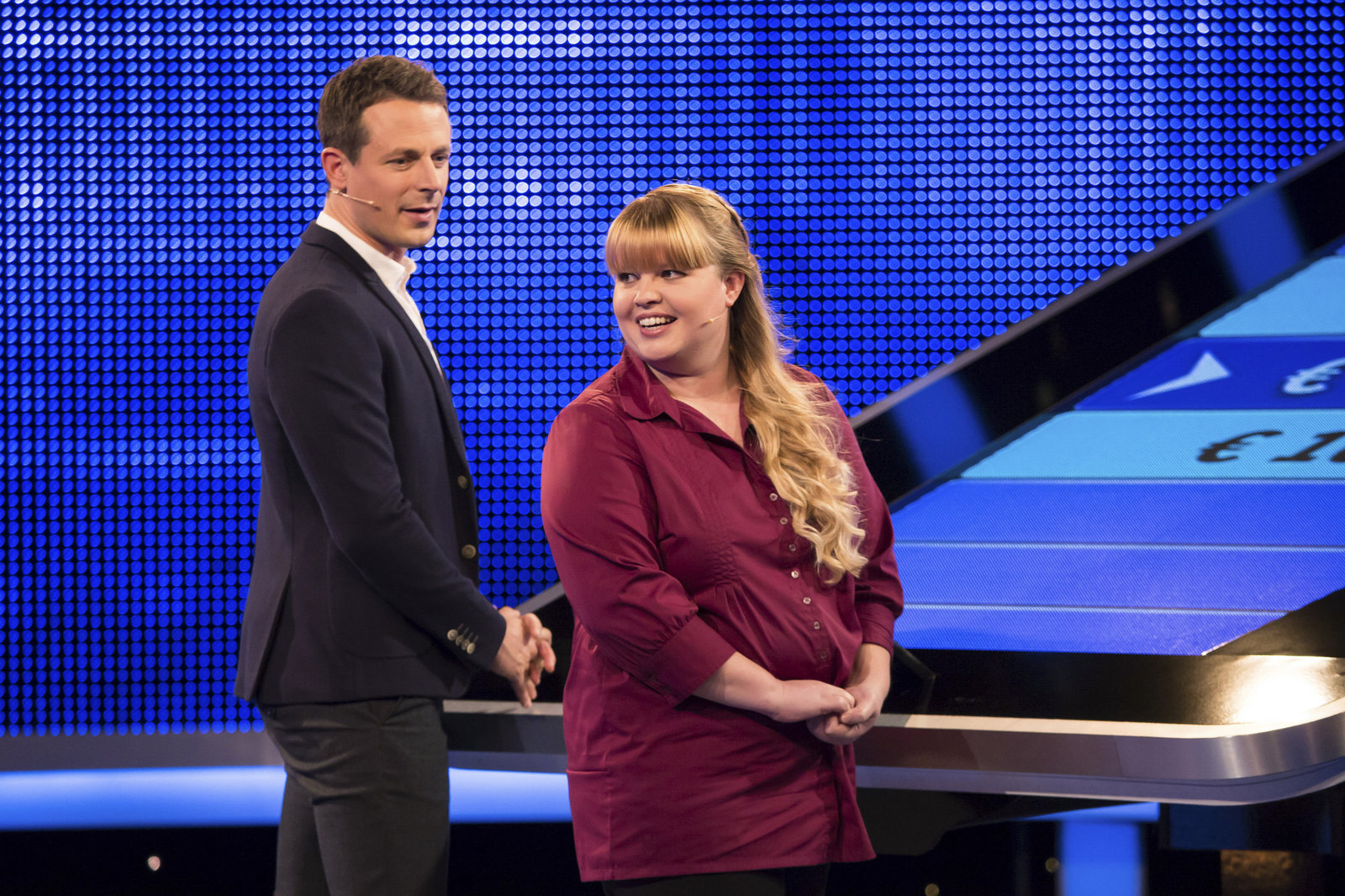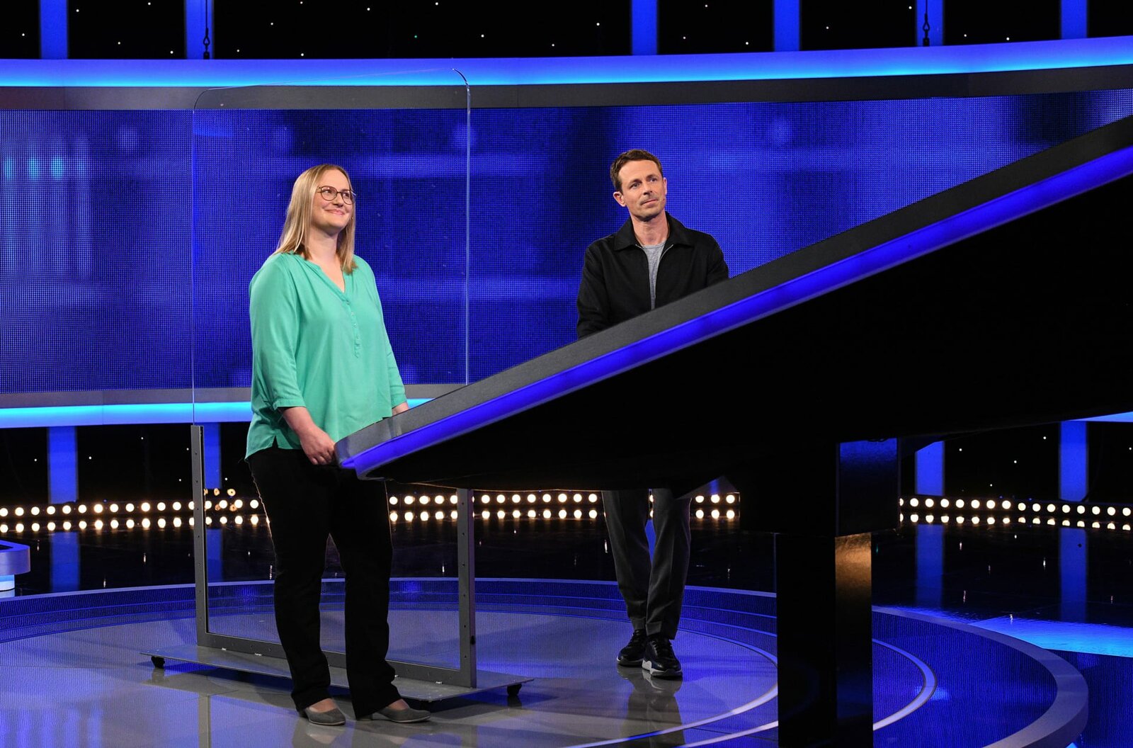 Moderator Alexander Bommes (l.) mit der Kandidatin Isabel Bergmann (r.).Bild: © ARD/Lisa Krechting