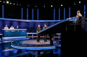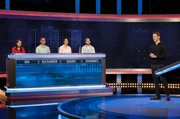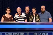Folge 222Moderator Alexander Bommes (M.) mit den Kandidaten (v.l.n.r.): Melanie Gross, Wolfgang Schneeloch, Gelareh Shahpar und Michael Sandner.Bild: © ARD/Uwe Ernst