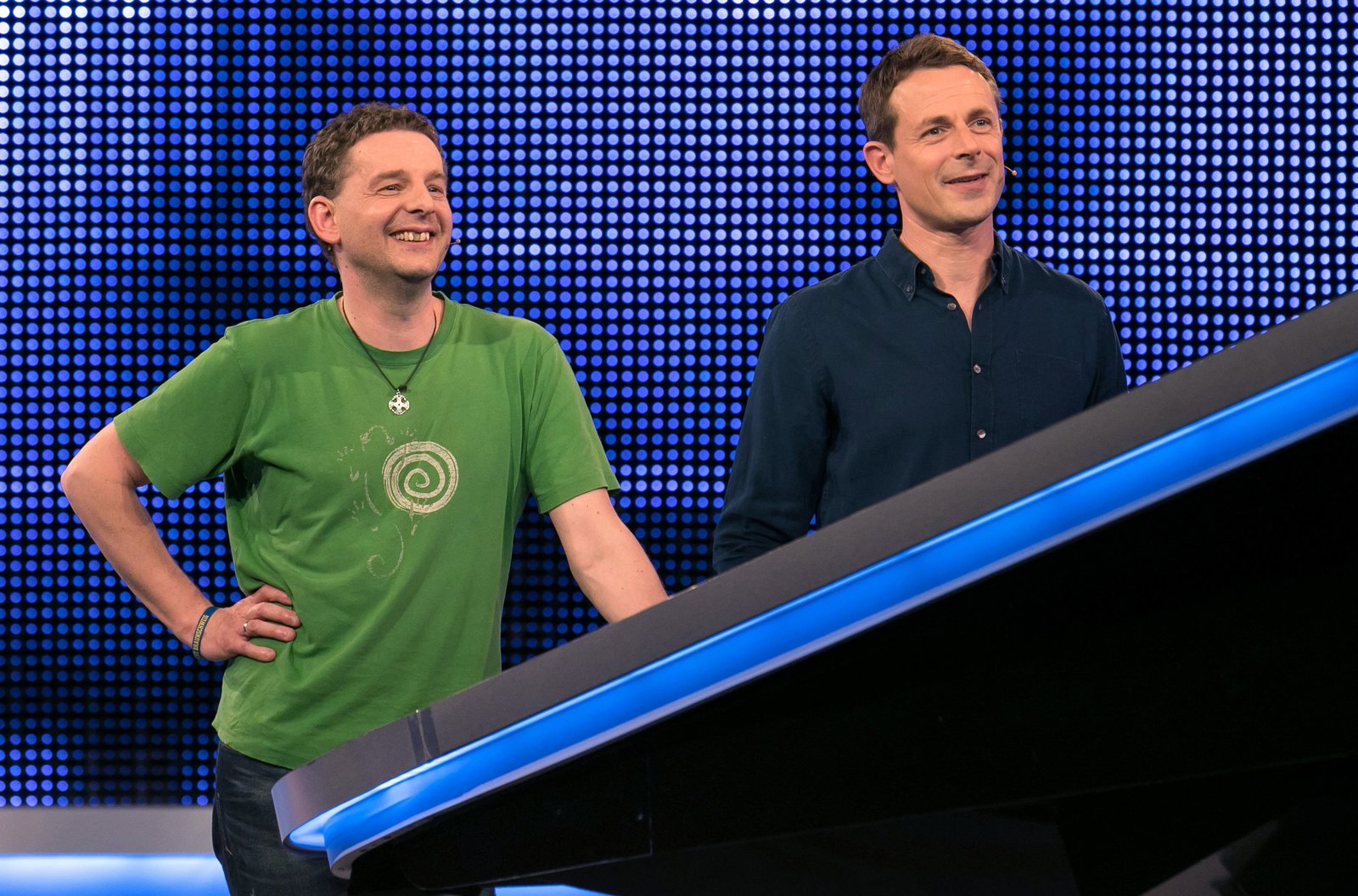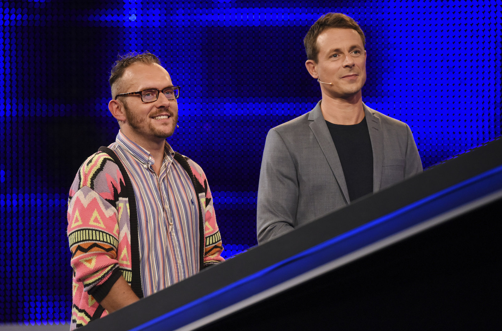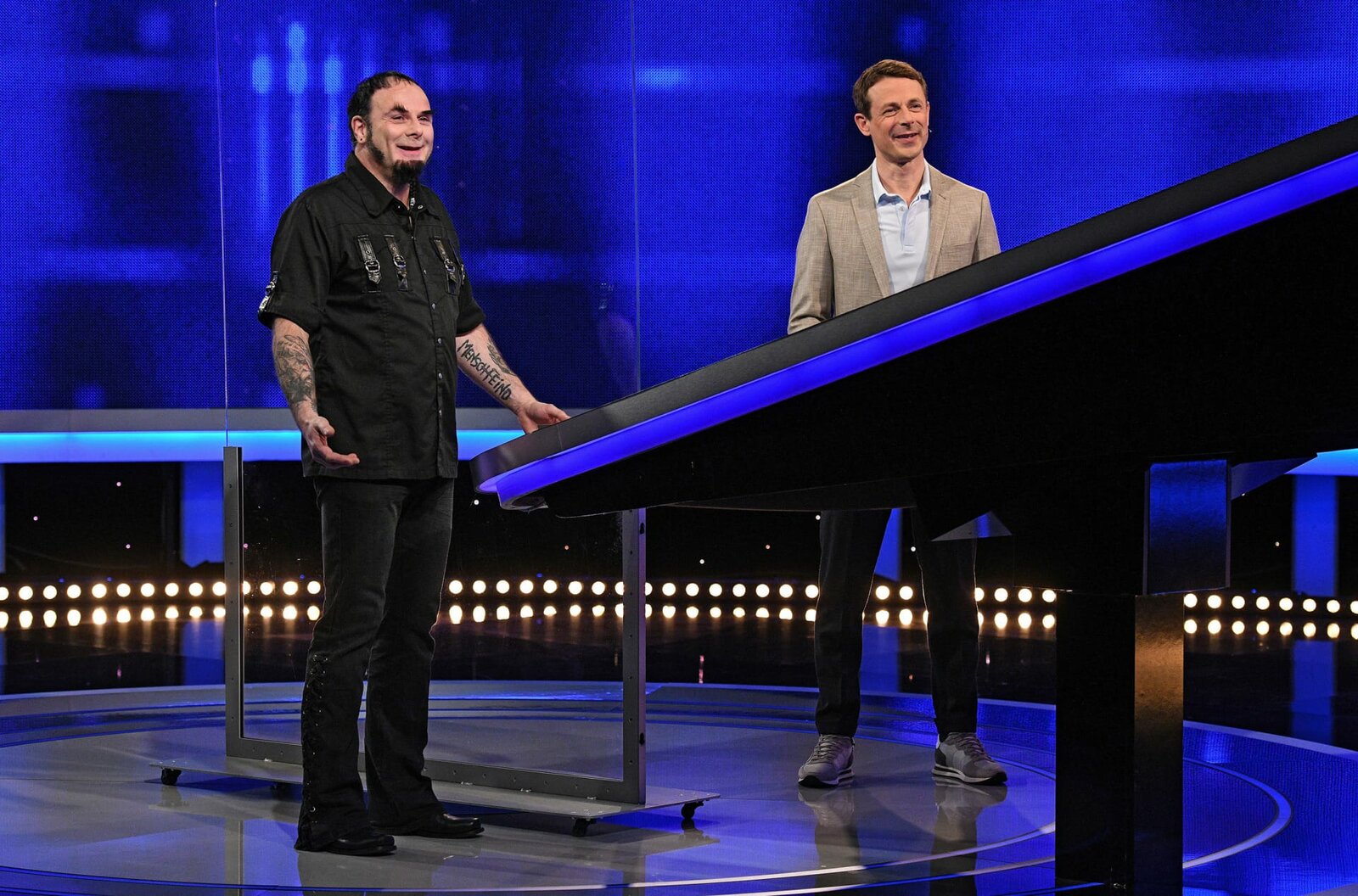 Moderator Alexander Bommes (r.) mit dem Kandidaten Frank von Kneten (l.).Bild: © ARD/Uwe Ernst