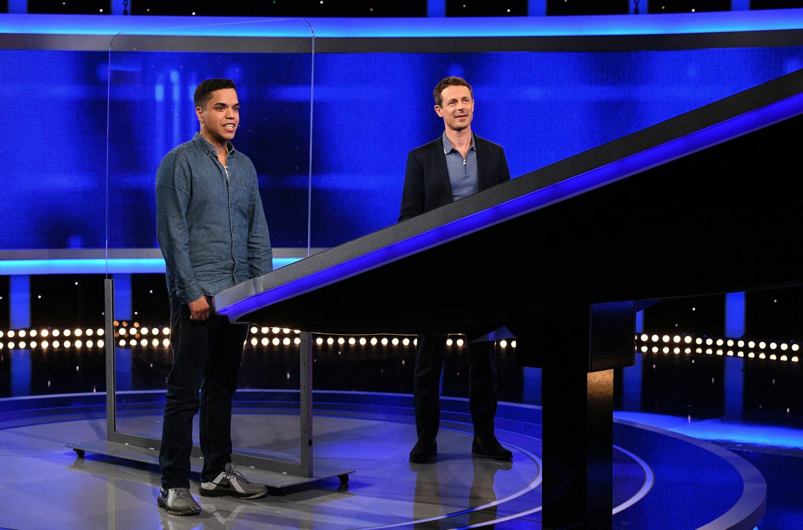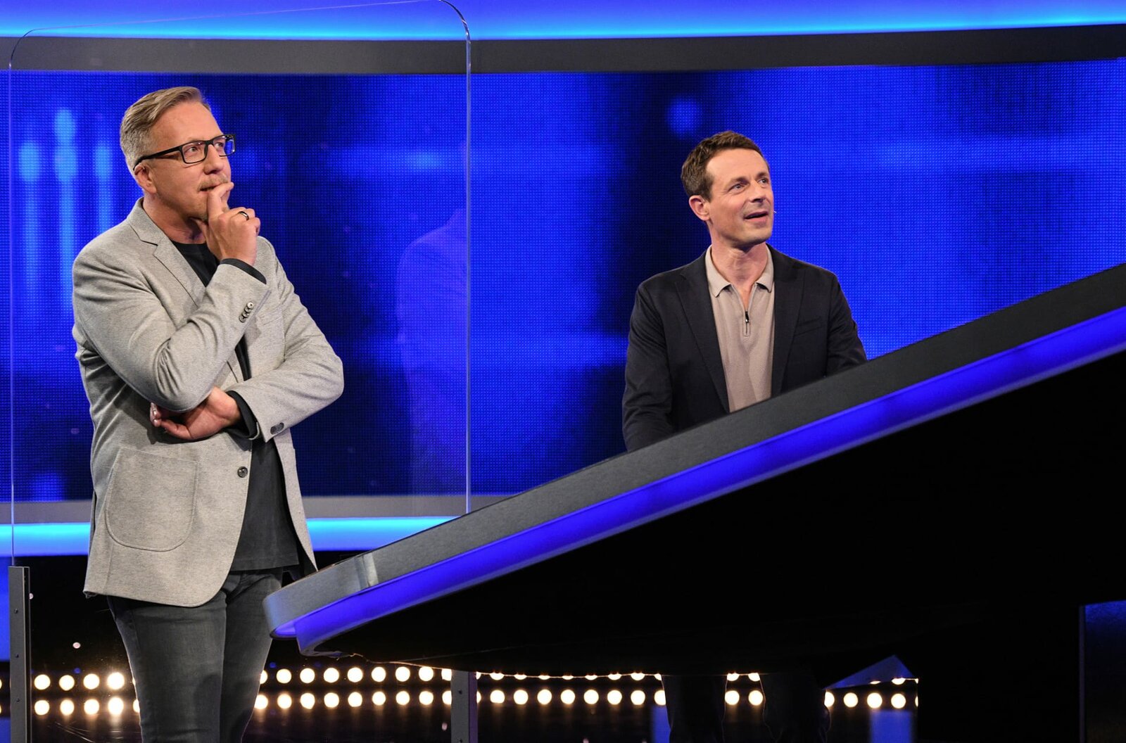 Moderator Alexander Bommes (r.) mit dem Kandidaten Julian Marquardt (l.).Bild: © ARD/Lisa Krechting