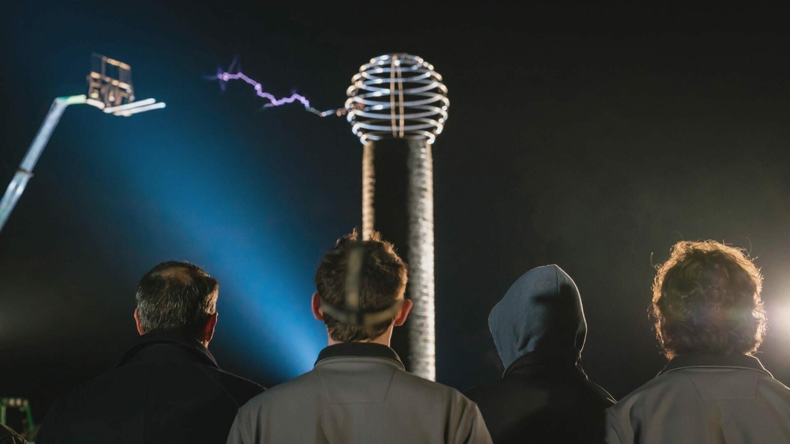 Der Wardenclyffe TowerTesla Coil 'test' of current at Aron's workshop.Bild: © Discovery Communications