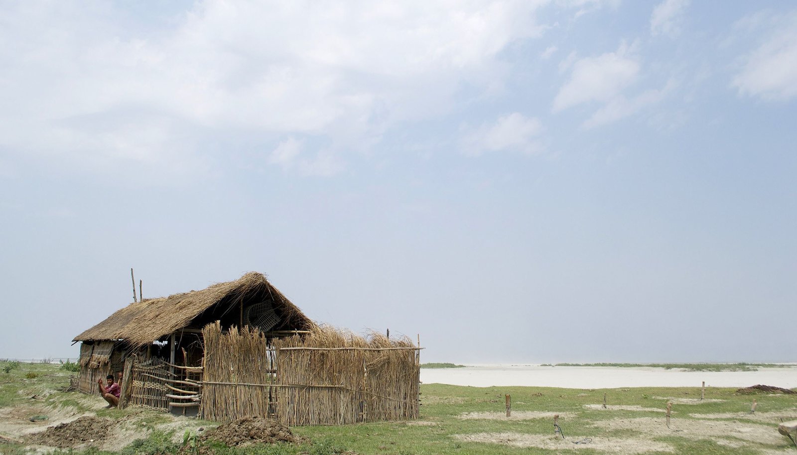 Indiens Reich der großen TiereDie Hütte des Rinderzüchters auf einer Sandinsel im Brahmaputra-Fluss.Bild: © NDR/Eikon Media/Ruth Berry