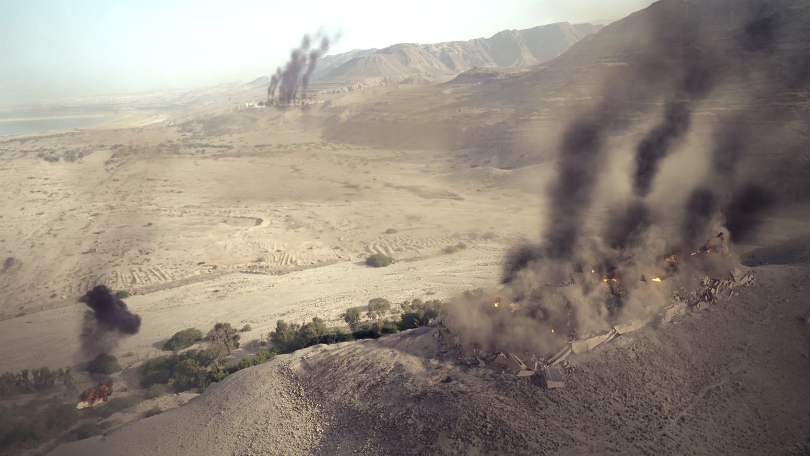 Sodom und GomorrhaDestroyed city with burning plumes of smoke.Bild: © National Geographic