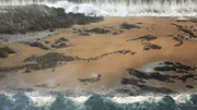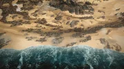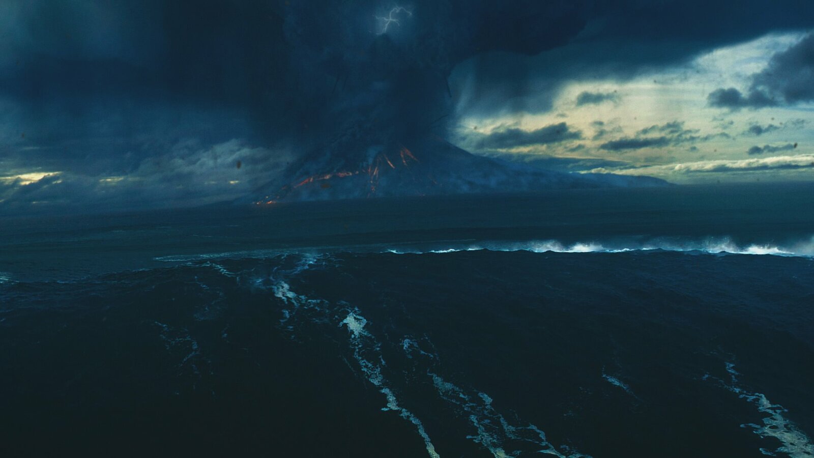 Teilung des Roten MeeresA giant tsunami wave approaches with an erupting volcano in the background.Bild: © National Geographic