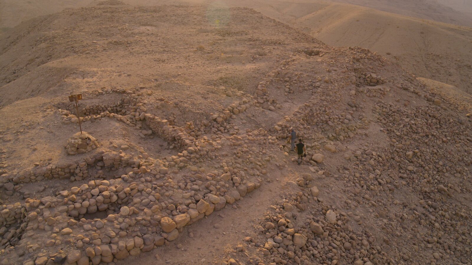 Sodom und GomorrhaJordan - Albert Lin and Mohammad walking toward the archaeological site, Numeira, in Jordan.Bild: © National Geographic