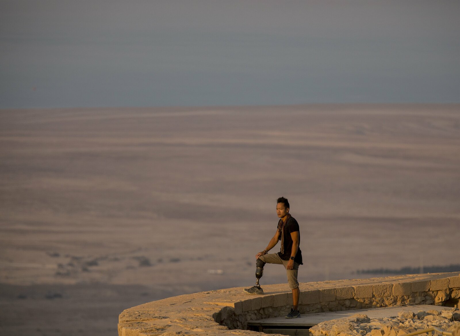 Teilung des Roten MeeresIsrael - Albert Lin looking out from Masada, an ancient fortress overlooking the Dead Sea. (National Geographic)Bild: © National Geographic Channel / © FOX NETWORKS GROUP BULGARIA