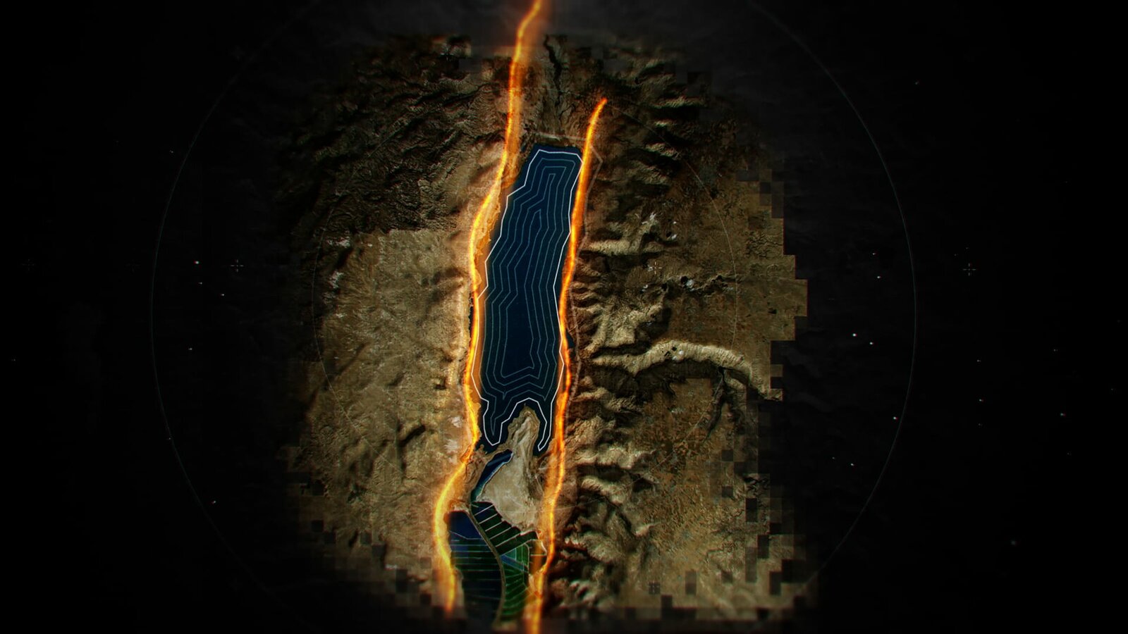 Sodom und GomorrhaTransverse fault lines, Dead Sea.Bild: © National Geographic