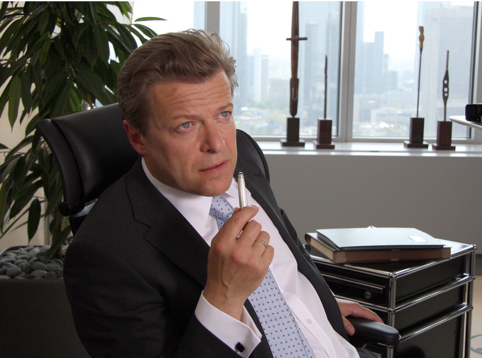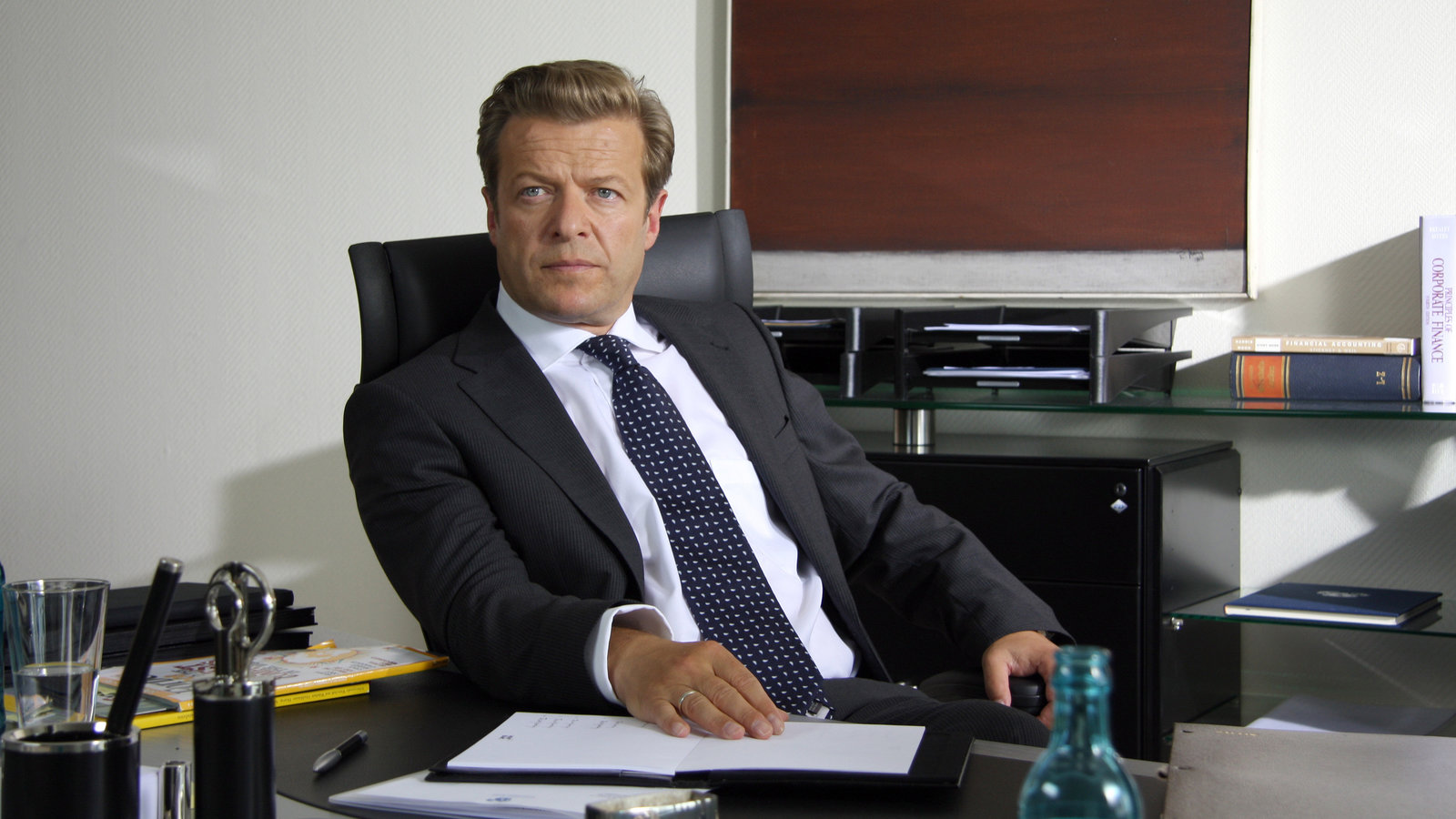 Kuckucksei"Die Rheinbergs", am Montag (06.07.09) um 20:15 Uhr im Ersten. Markus von Rheinberg (Roland Koch), knallharter Geschäftsmann und charmanter Gesellschafter, leitet die Geschicke der Bank mit Weitblick und Effizienz.Bild: © MDR/Degeto/Tivoli Film/Flo Lackn