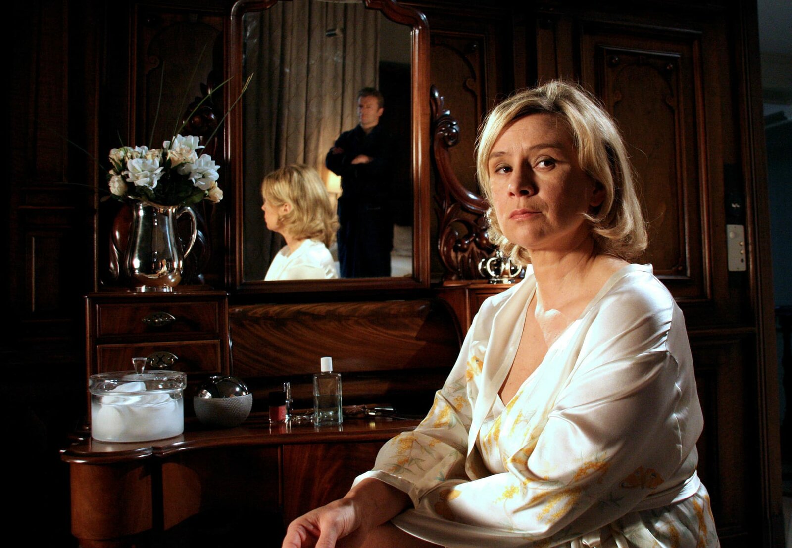 KaterfrühstückARD GELD.MACHT.LIEBE, Folge 16, KATERFRÜHSTÜCK, Deutschland 2009, Regie Helmut Metzger, am Donnerstag (08.09.11) um 01:50 Uhr im Ersten. Sophia (Susanne Schäfer) hat den Verdacht, dass ihr Mann Markus (Roland Koch) ihr nicht alles erzählt.Bild: © "ARD Degeto/ARD Degeto/Tiv