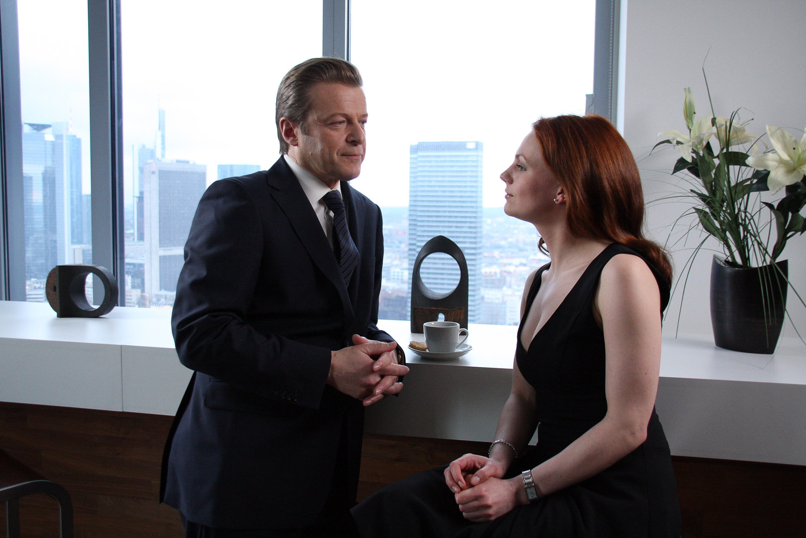 Schmutziges GeldSusanne Schäfer (Sophia von Rheinberg), Roland Koch (Markus von Rheinberg).Bild: © hr-fernsehen