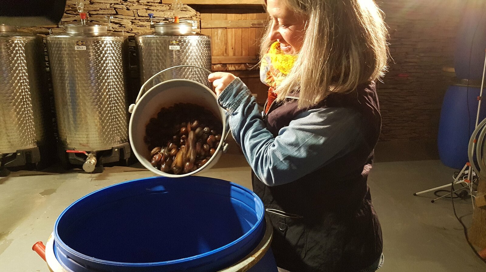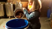 Kochkäse, Hanf und Speierling neu entdecktBrennerin Margot Guillon maischt Speierlingfrüchte einBild: © SR/Ute Werner