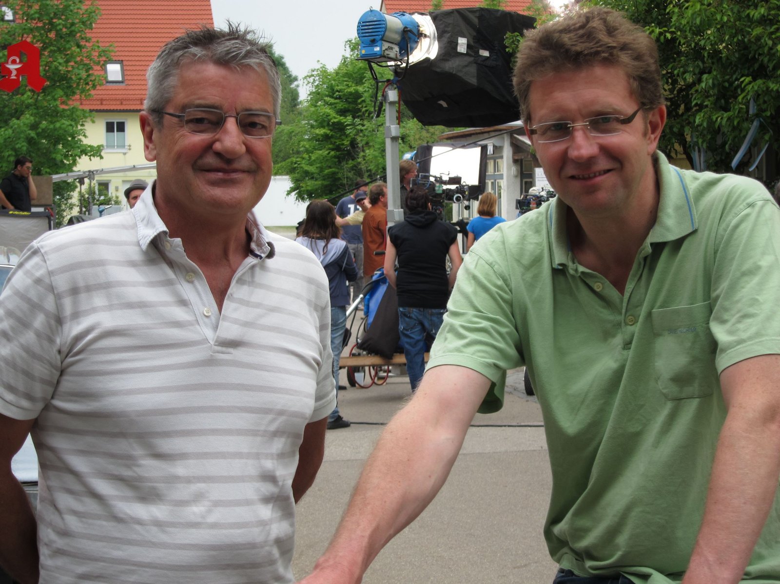 Gernstl in OberbayernFranz Gernstl besucht den Drehbuchautor Michael Seyfried (rechts) im Fernsehdorf "Lansing" aus der Serie "Dahoam is Dahoam".Bild: © BR/megaherz gmbh