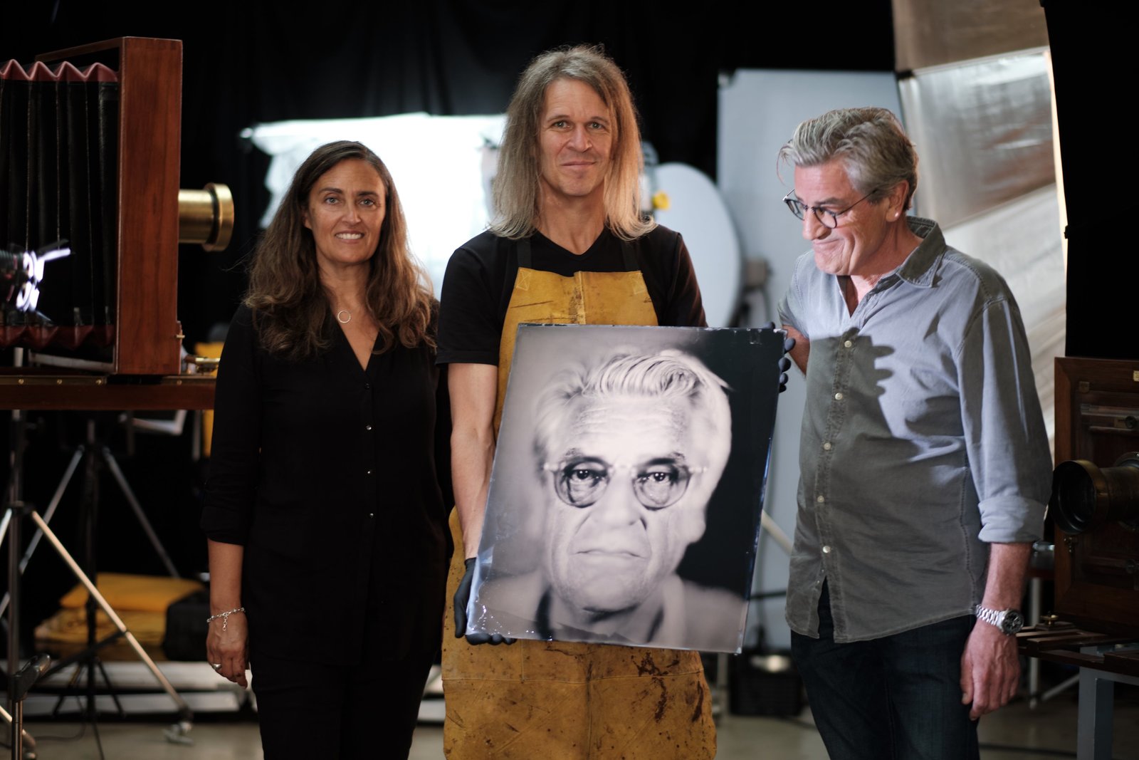 Franz X. Gernstl (rechts) und die „Lightcatcher“. Sie machen Monsterportraits mit einer Monsterkamera. Ambrotypie ist ein Verfahren aus den Anfängen der Fotografie. Es entstehen Unikate auf mit Silber beschichteten Glasplatten.Bild: © BR/megaherz gmbh/HP Fischer