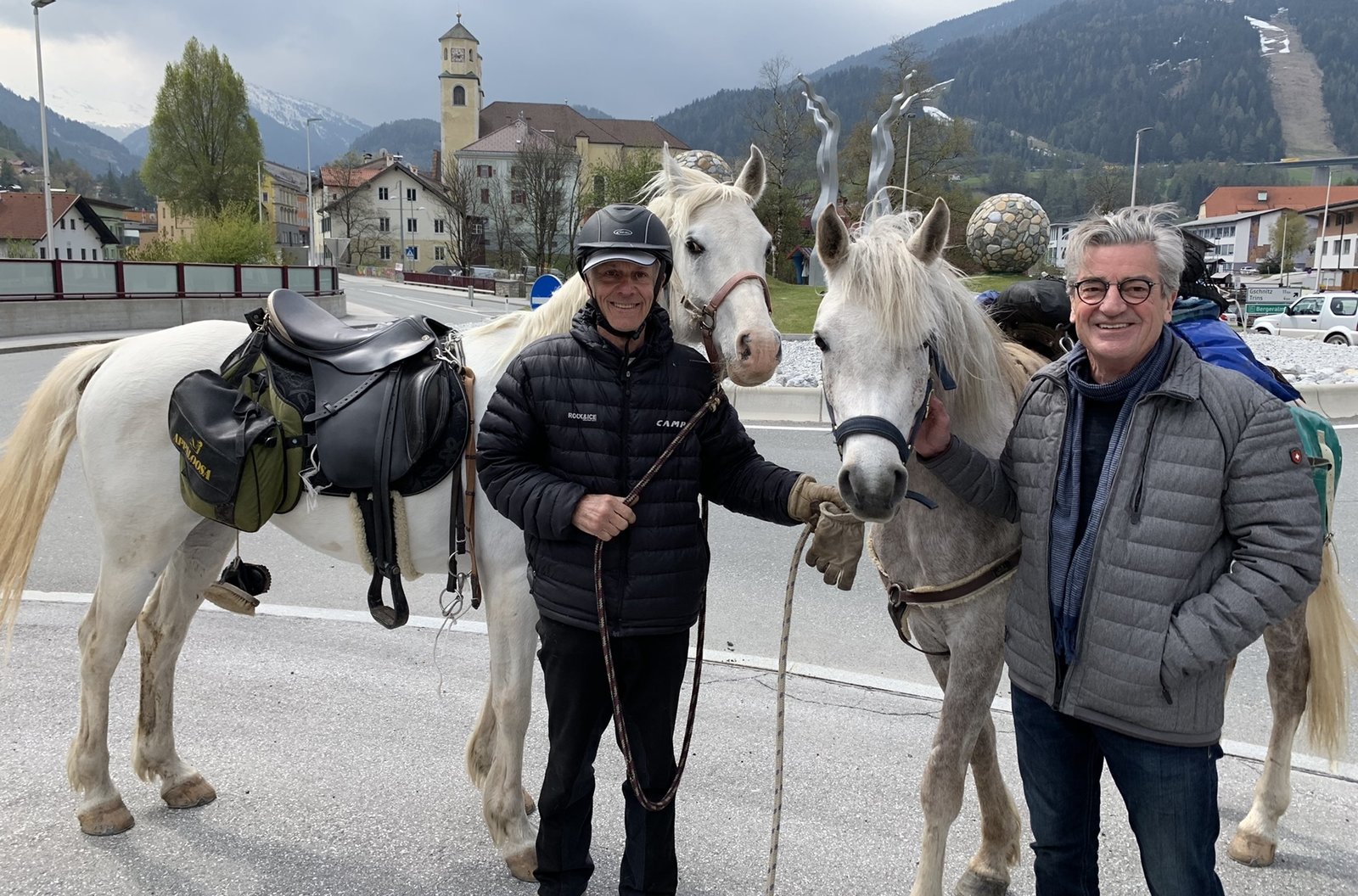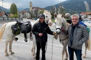 Begegnung an der Brenner-Straße: Franz X. Gernstl trifft (rechts) auf Claudio Paris aus Pergine in Italien ist mit zwei Pferden unterwegs nach Dresden, um seinen Sohn zu besuchen.Bild: © BR/megaherz gmbh
