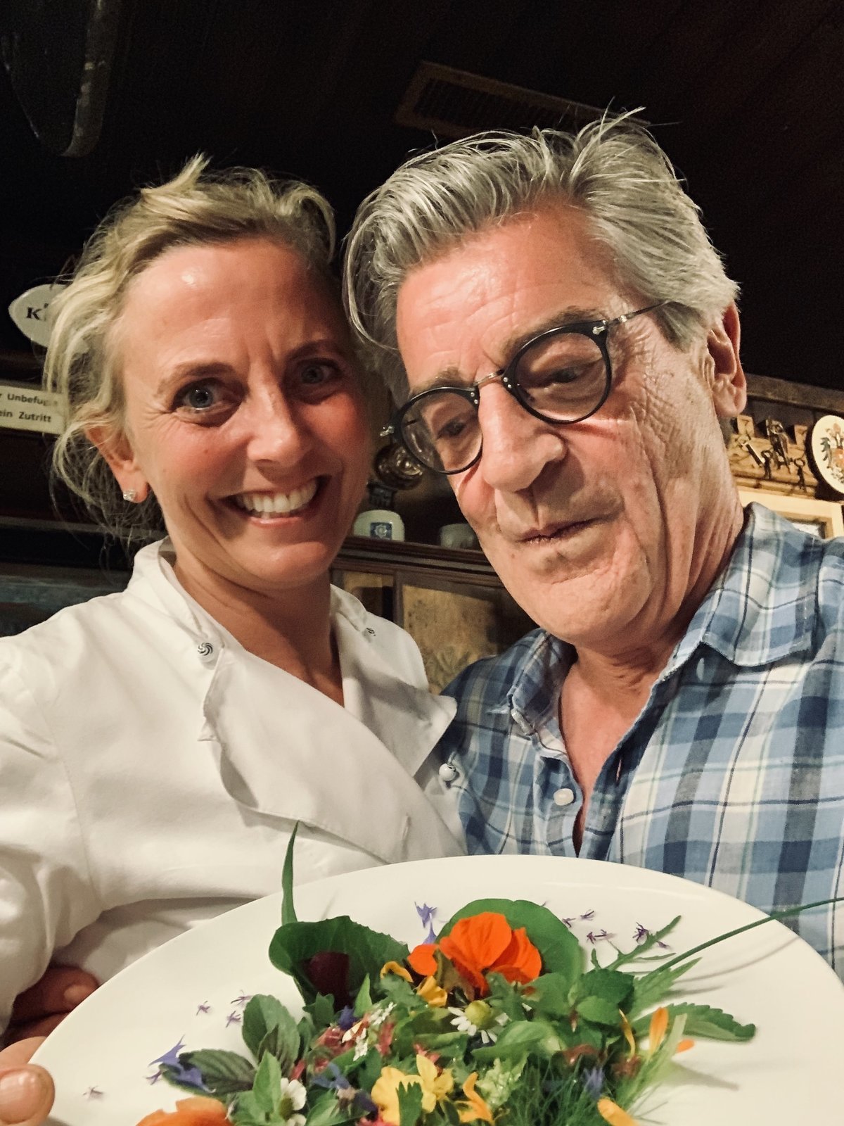 Franz X. Gernstl mit Janett Platino. Sie zaubert Kunstwerke mit Zutaten aus dem eigenen Garten.Bild: © BR/megaherz gmbh/HP Fischer