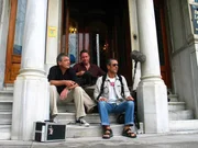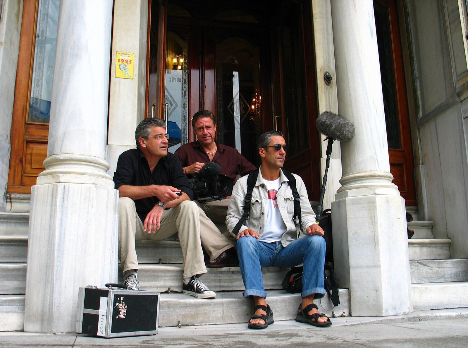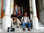Franz X. Gernstl (links) mit seinem Team vor dem altehrwürdigen Grandhotel Londra.Bild: © ZDF und BR/Megaherz