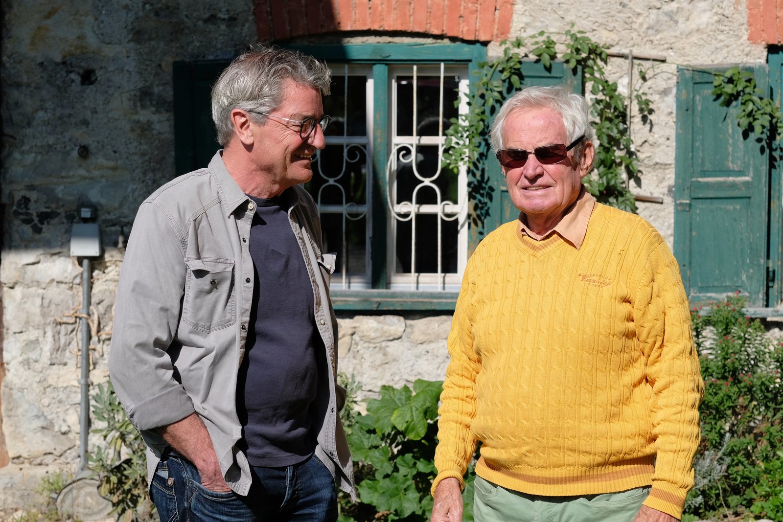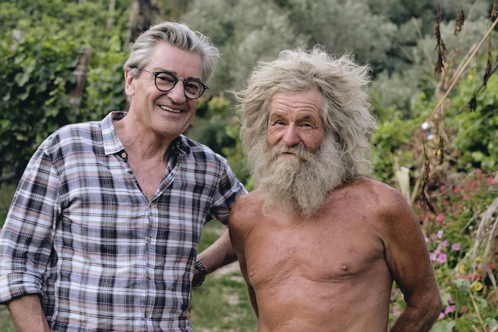 Franz X. Gernstl (links) mit Hans Kurt von Wohlgemut, dem ?Regenmacher? von Sankt Pauls.Bild: © BR/megaherz gmbh/HP Fischer