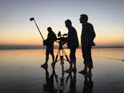Das Filmteam am Strand von Venice. Franz X. Gernstl und Kamermann HP Fischer waren vor 35 Jahren schon einmal da. Wie hat sich Los Angeles in dieser Zeit verändert?Bild: © BR/megaherz gmbh . Die Nutzung im Social Media-Bereich sowie inhaltlich andere Verwendungen nur nach vorheriger schriftlicher Vereinbarung mit dem BR-Bildmanagement