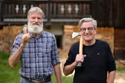 Franz X. Gernstl (rechts) mit Almliterat Sepp Kahn. Er hackt gerne Holz und schreibt gerne Bücher.Bild: © HP Fischer / BR;megaherz gmbh / BR/megaherz gmbh/HP Fischer