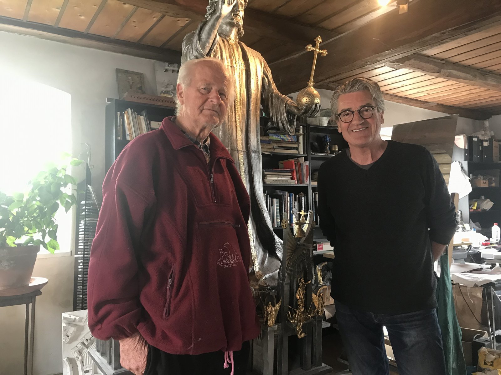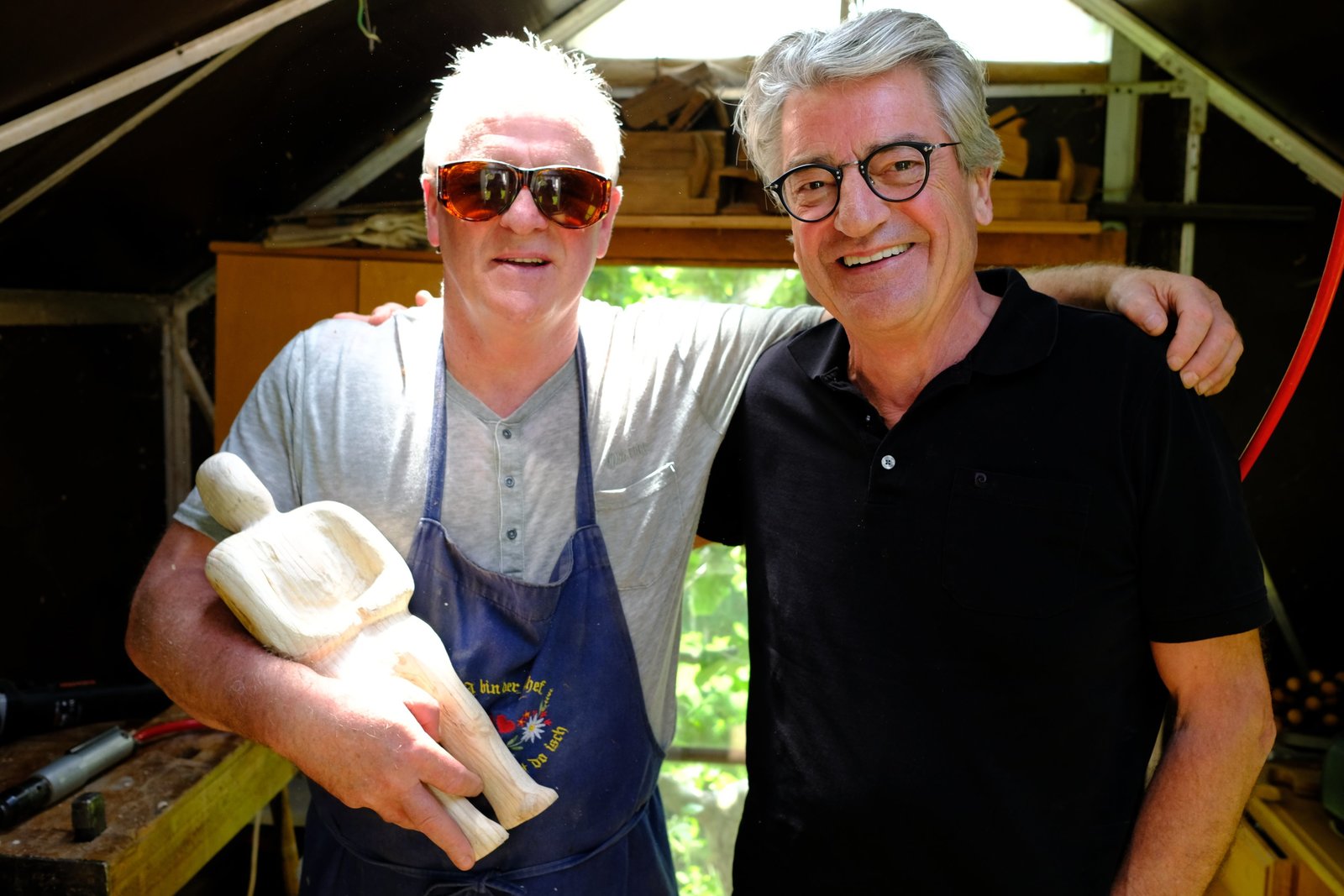 Franz X. Gernstl (rechts) mit Bildhauer Hermann Graber aus Hall in Tirol: ‚ÄûIch bin so ein √ºbriggebliebener Hippie‚Äú.Bild: © HP Fischer / BR;megaherz gmbh / BR/megaherz gmbh/HP Fischer