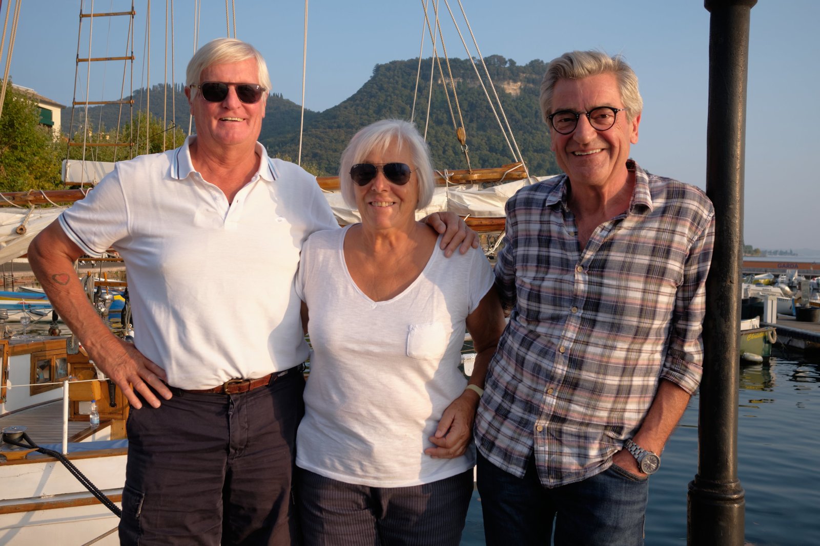 Anna und Hans Renner haben sich einen Traum erfüllt: Sie schippern mit ihrem historischen Zweimaster über den Gardasee. Rechts: Franz Xaver Gernstl.Bild: © BR/megaherz gmbh/HP Fischer