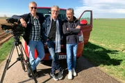 Wieder unterwegs: drei Freunde und ein roter Bus. Von links: Kameramann HP Fischer, Reporter Franz Gernstl und Tonmann Stefan Ravazs.Bild: © BR