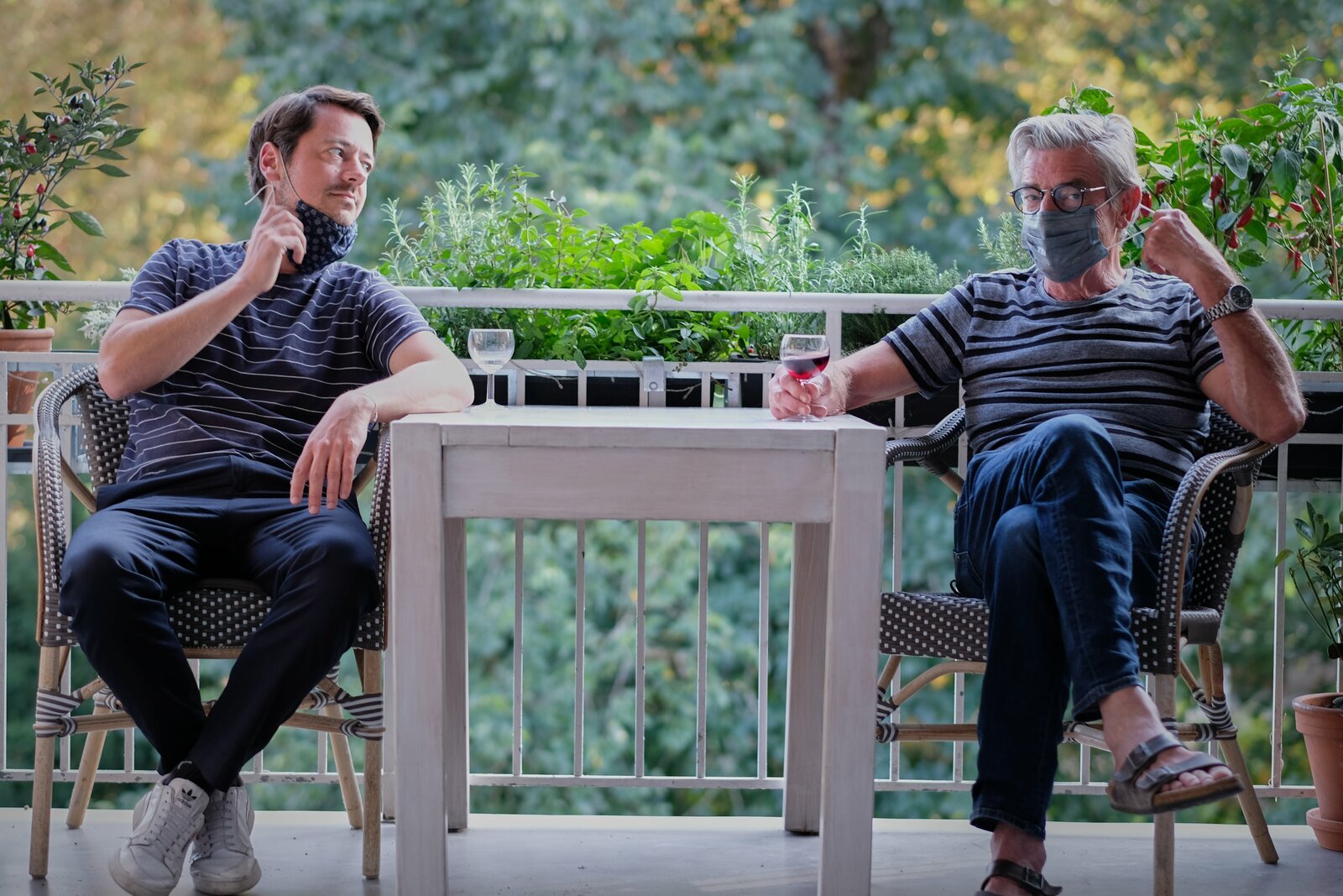 Jonas und Franz Gernstl mit Masken.Bild: © BR/megaherz gmbh/Hans-Peter Fischer
