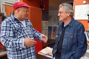 Spontane Begegnung im ehemaligen Hippieviertel Haight-Ashbury: Franz X. Gernstl (links) und der selbsternannte meistgesuchte Bandit des Wilden Westens: "Brother The Kid".Bild: © BR/megaherz gmbh