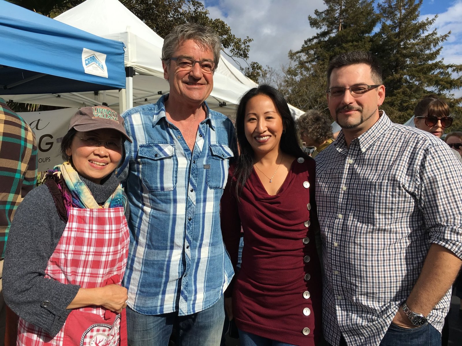 Eine internationale bayerische Familie. Mutter Theresia (links) kam von den Philippinen nach München und bäckt jetzt in Kalifornien bayerischen Pot Pie mit Schweinebratenfüllung. Die in München geborene Tochter und ihr Giesinger Ehemann (rechts) sind ebenfalls nach San Francisco ausgewandert.Bild: © BR/megaherz gmbh