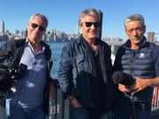 Das Duo rund um den Filmemacher Franz X. Gernstl vor der Skyline Manhattan.Bild: © BR/megaherz gmbh . Die Nutzung im Social Media-Bereich sowie inhaltlich andere Verwendungen nur nach vorheriger schriftlicher Vereinbarung mit dem BR-Bildmanagement
