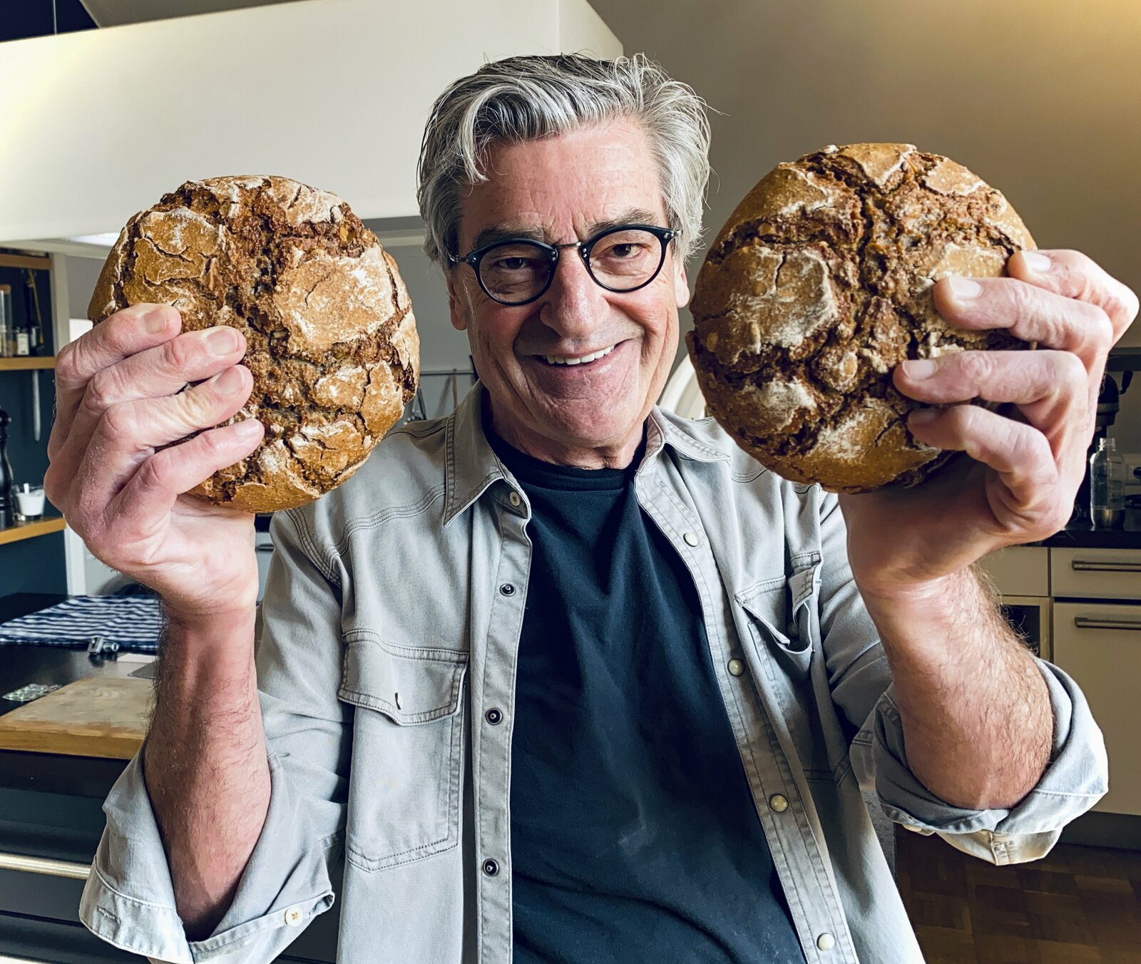 Franz Gernstl zu Hause mit Brot.Bild: © BR/megaherz gmbh/Franz Gernstl