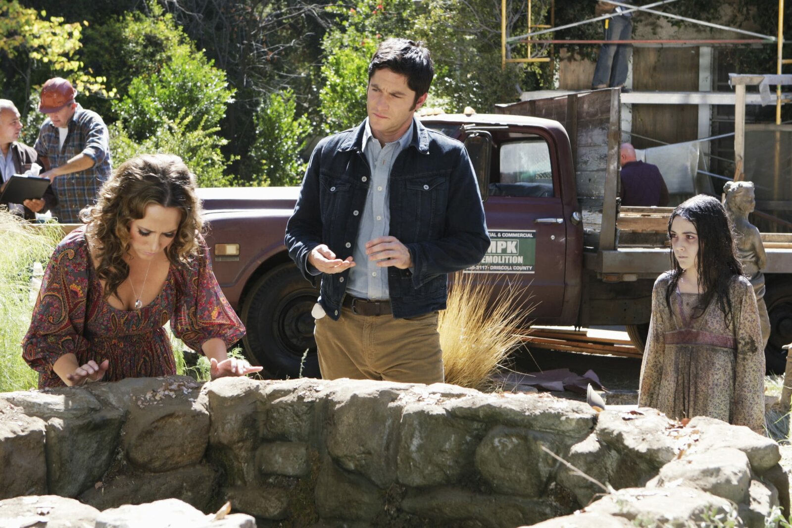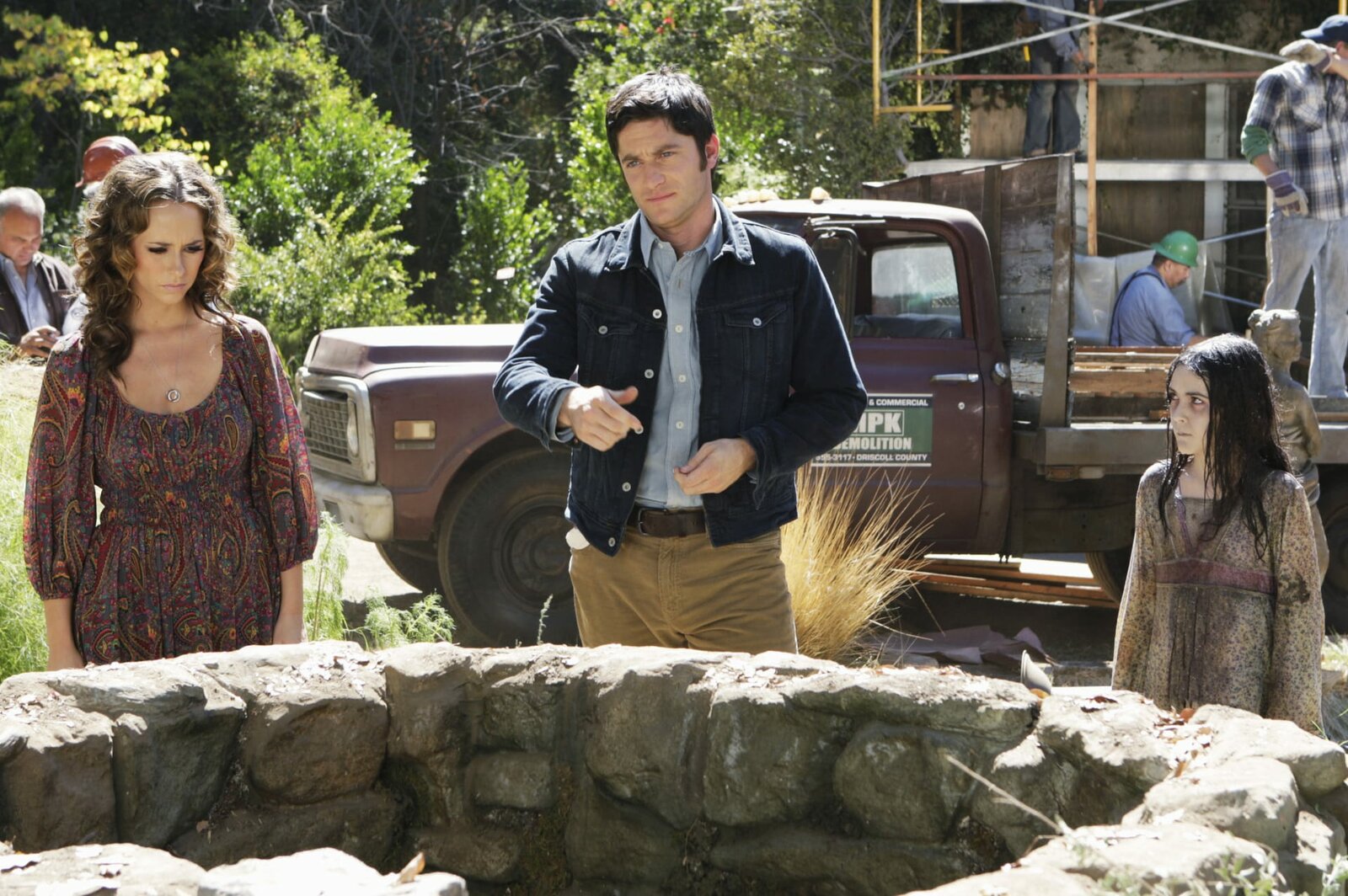 Verloren in der DunkelheitJim (David Conrad, M.) arbeitet bei einer Abrissfirma und hilft bei der Entrümpelung einer alten Hauses. Melinda (Jennifer Love Hewitt, l.) besucht ihn und trifft dort auf den Geist von Gretchen (Isabelle Fuhrman, r.) ...Bild: © ABC Studios Lizenzbild frei
