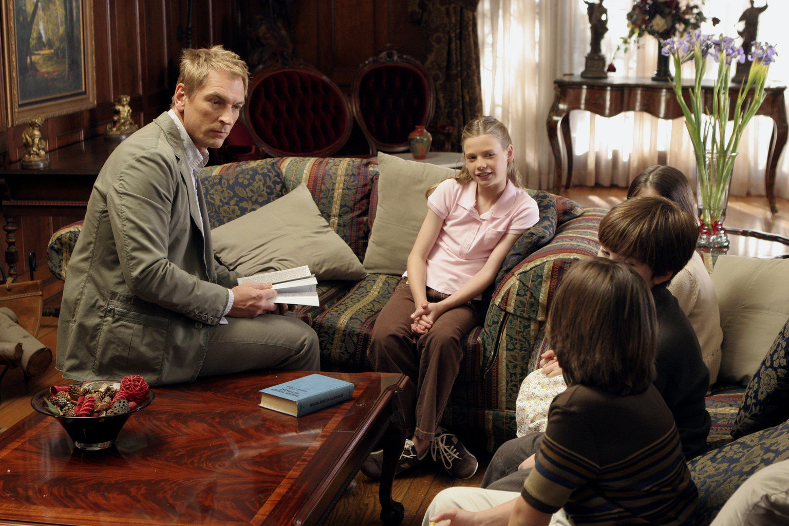Das fünfte ZeichenEthan Clark (Julian Sands, l.) unterhält sich mit Kirsten (Kyle Chavarria, 2.v.l.), Elana (Alisa Gerstein, hinten r.), Liam (Jeremy Shada, 2.v.r.) und Stefano (Davide Schiavone, vorne r.) …Bild: © ABC Studios