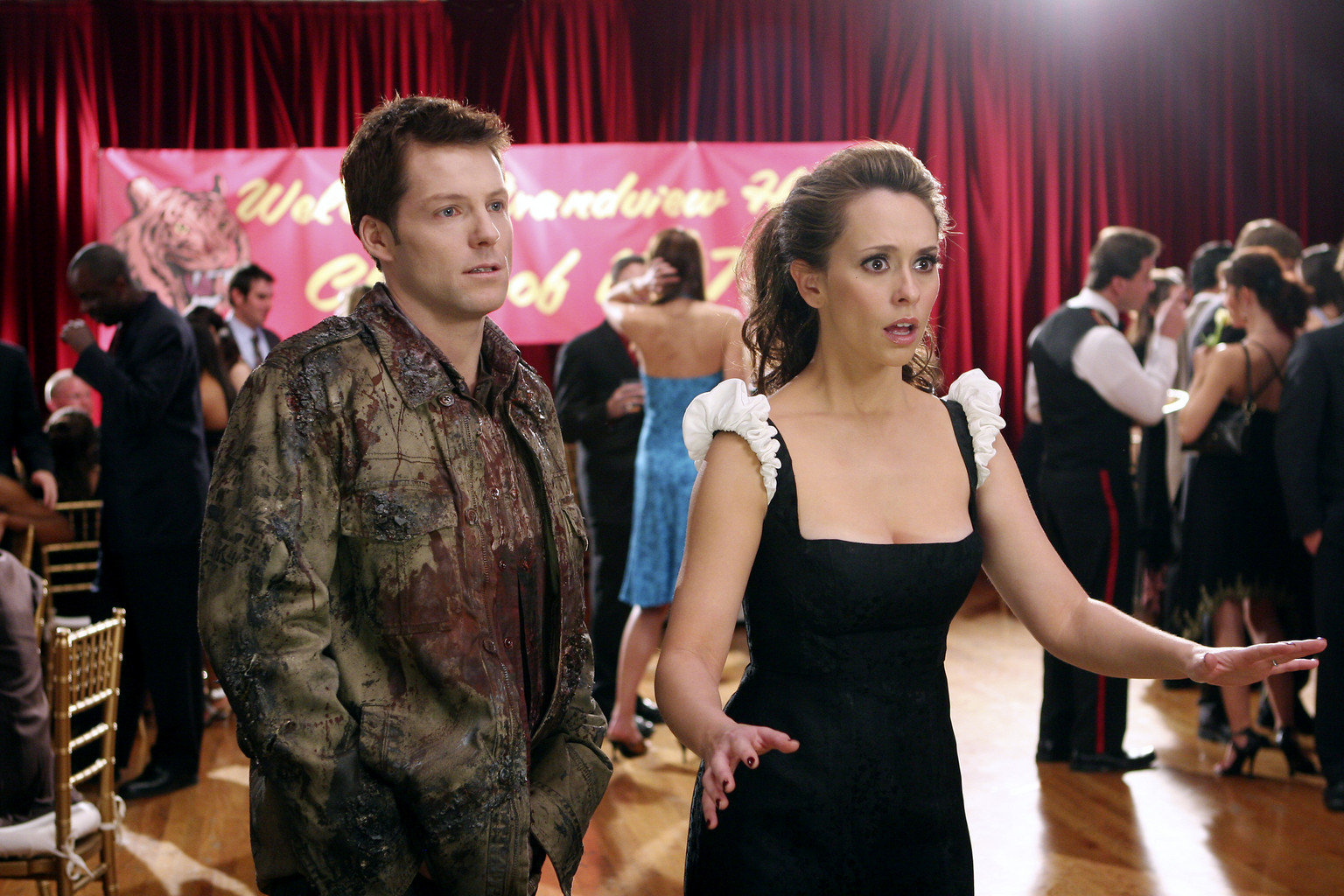 Haus der SchuldMelinda (Jennifer Love Hewitt, r.) redet dem Geist von Ex-Profi Matt Vonner (Christopher Wiehl, l.) ins Gewissen ...Bild: © kabel eins
