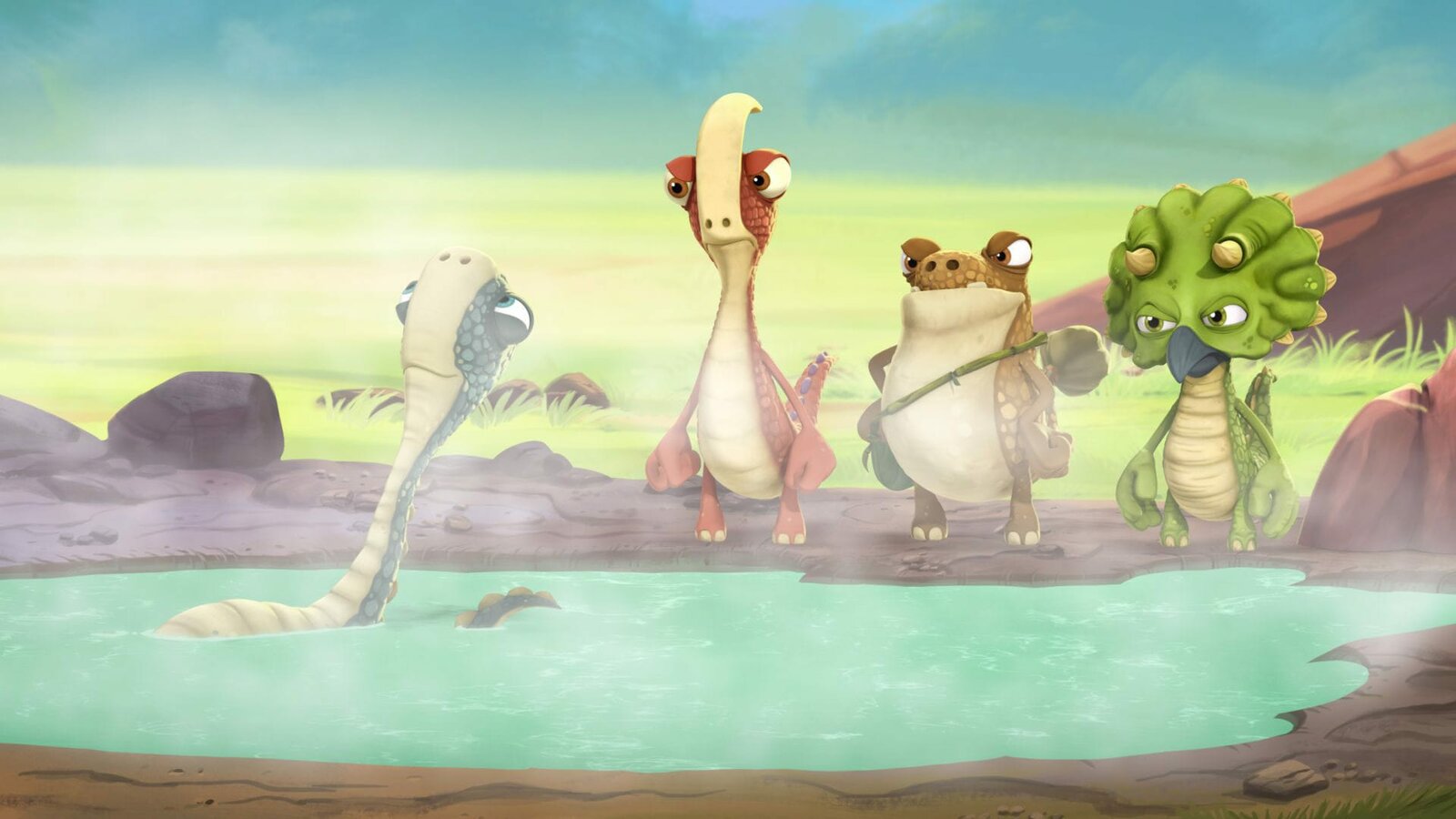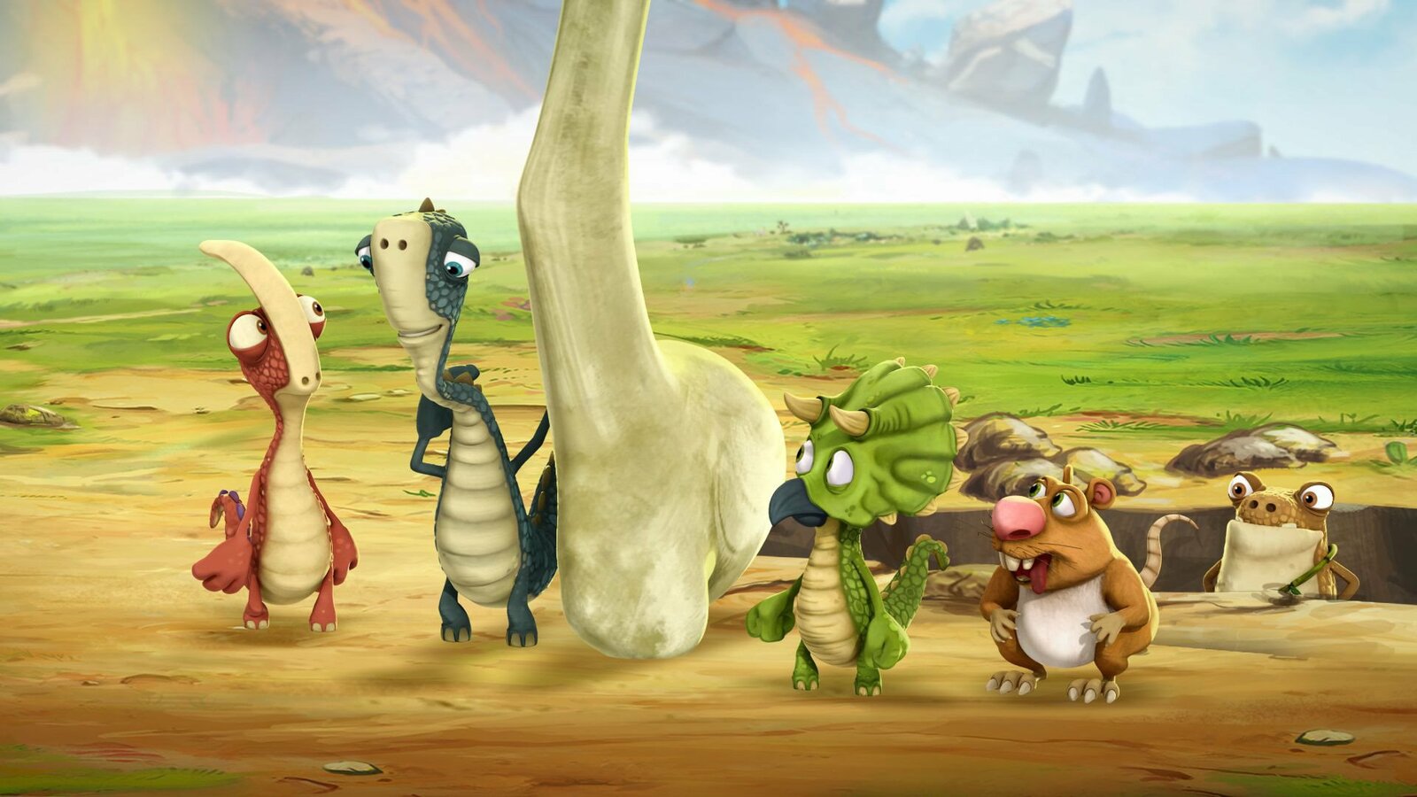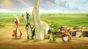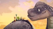Das große RennenUm den furchteinflößenden und faszinierenden Gigantosaurus rankt sich ein Mysterium, da niemand sich traut, ihn wirklich zu erforschen. Deshalb machen sich die vier Dinosaurierfreunde Rocky, Billy, Tiny und Manu auf in ein Abenteuer, um Licht ins Dunkle zu bringen.Bild: © (C) Cyber Group Studios S.A.S.