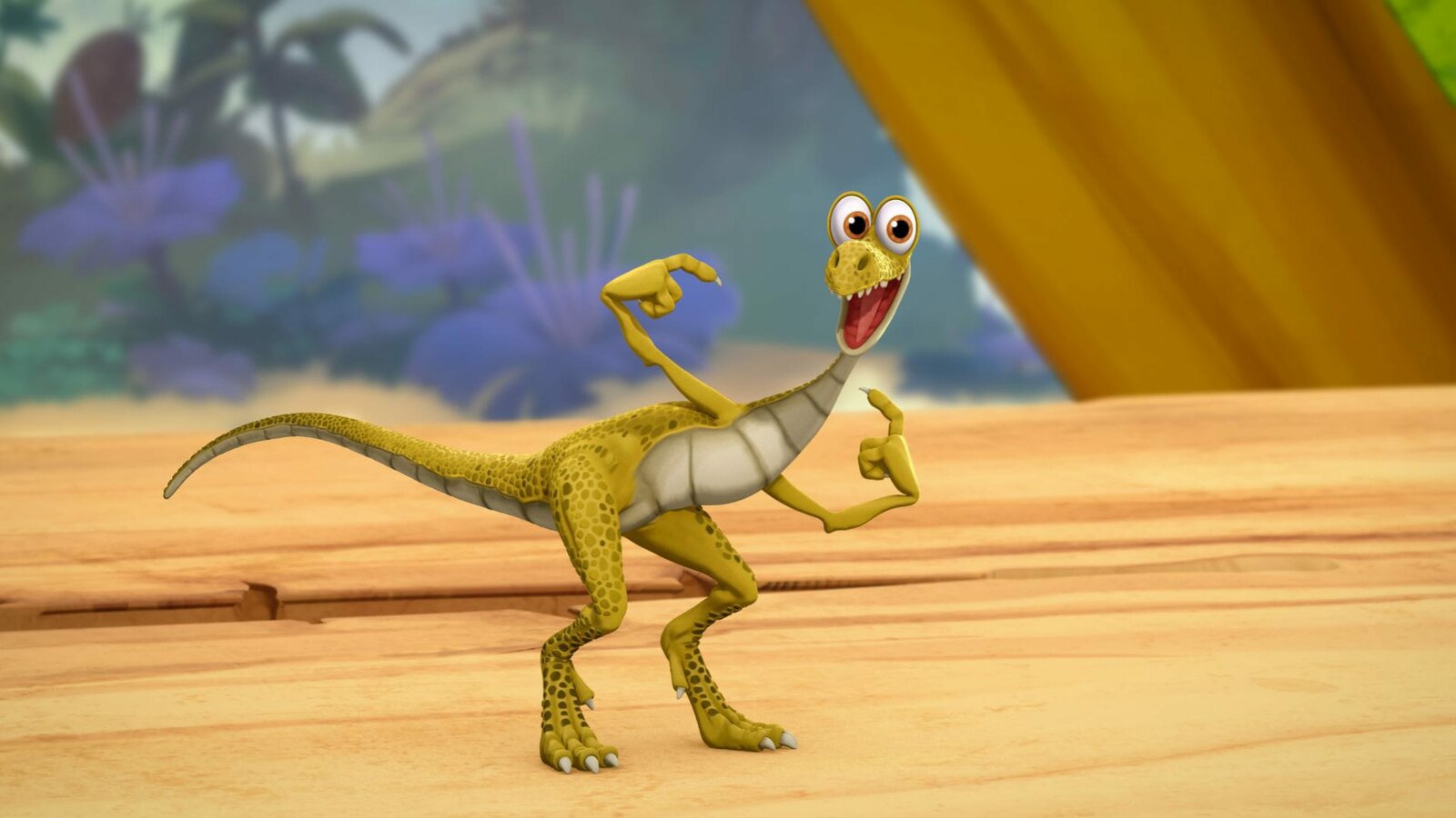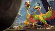 Die BlumenschleuderDie Raptoren bringen Marsh dazu, ein Spiel zu spielen. Allerdings verfolgen sie damit das Ziel, Giganto zu sabotieren.Bild: © ORF/Markand Media