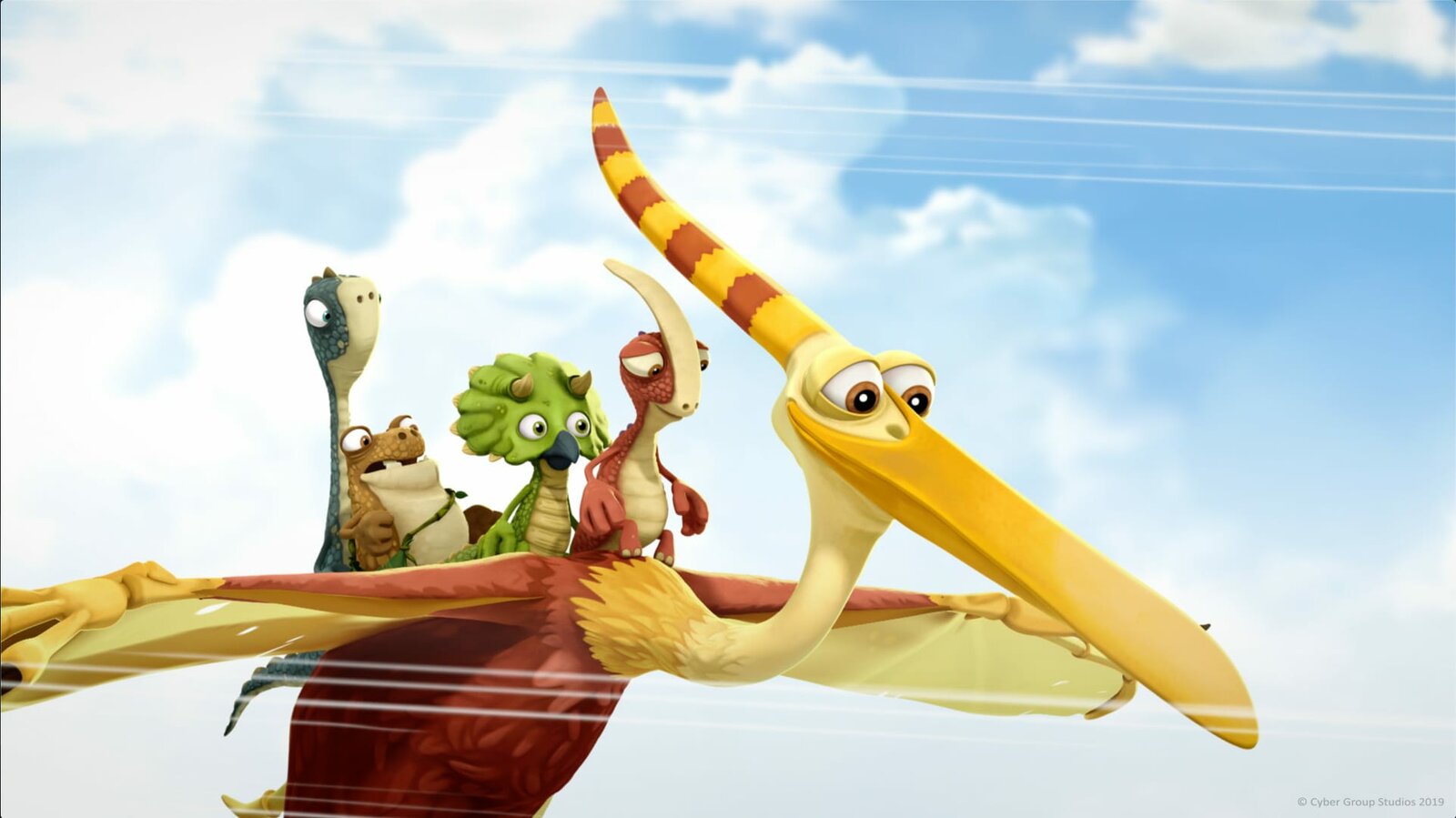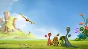 Archies erster Flug"Gigantosaurus", "Archies erster Flug." Cror und Totor machen sich über Archie lustig. Als einziger Dino seiner Art kann er nicht fliegen. Mazu möchte ihrem Freund unter die Flügel greifen. Kurzerhand bastelt sie ihm neue Schwanzfedern. Doch leider klappt der erste Versuch nicht. Offenbar braucht Archie mehr Muskeln.Bild: © ORF/Markand Media