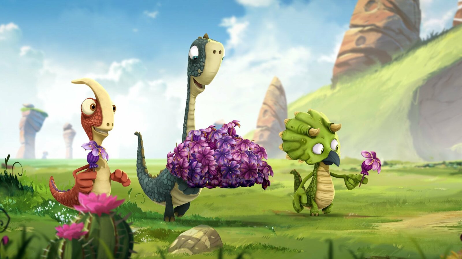Die Blumenschleuder"Gigantosaurus", "Die Blumenschleuder." Schon lange haben die Raptoren-Geschwister Cror und Toto ein Auge auf die Knochenvorräte von Giganto geworfen. Mithilfe eines raffinierten Plans hoffen sie, an die Köstlichkeiten zu kommen. Ohne es zu ahnen, spielt Marsh dabei eine Schlüsselrolle.Bild: © ORF/Markand Media