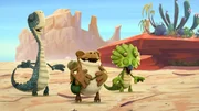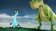 Gigantos Lachen"Gigantosaurus", "Gigantos Lachen." Giganto geht es gar nicht gut. Mazu vermutet, dass ihn gigantische Zahnschmerzen plagen. Die Dinos beschließen, dem Gigantosaurus zu helfen. Dazu benötigen sie den Saft einer seltenen Pflanze, die nur in der Oase in der Wüste wächst. Doch dort treiben Skorpione ihr Unwesen.Bild: © ORF 1