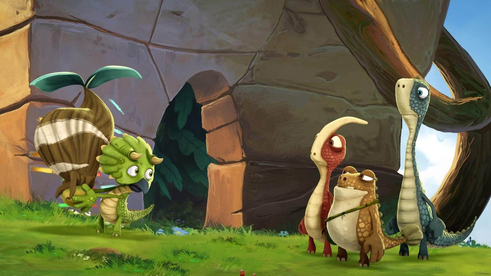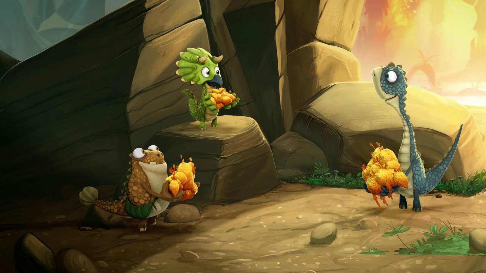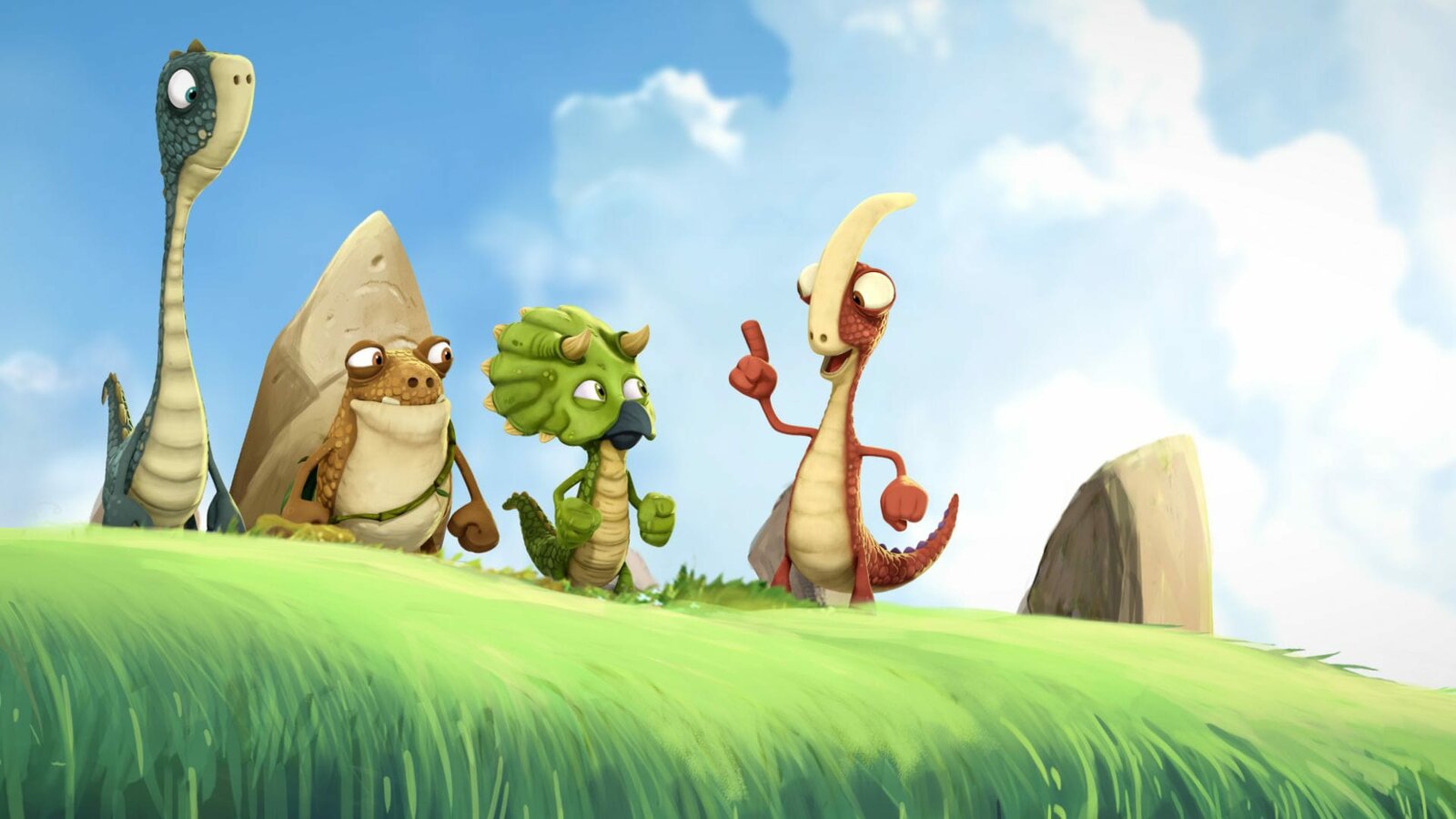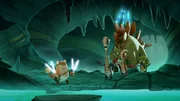 Der größte Held"Gigantosaurus", "Der größte Held." Ein großer Stein bedroht die Höhle der Dino-Kids. Zum Glück schafft es Tiny, die Gefahr zu bannen. Begeistert wird sie für ihren Mut von allen als Heldin gefeiert. Nur Rocky zeigt sich wenig angetan. Ihn frisst der Neid! Eifersüchtig fasst er einen waghalsigen Plan.Bild: © ORF/Markand Media