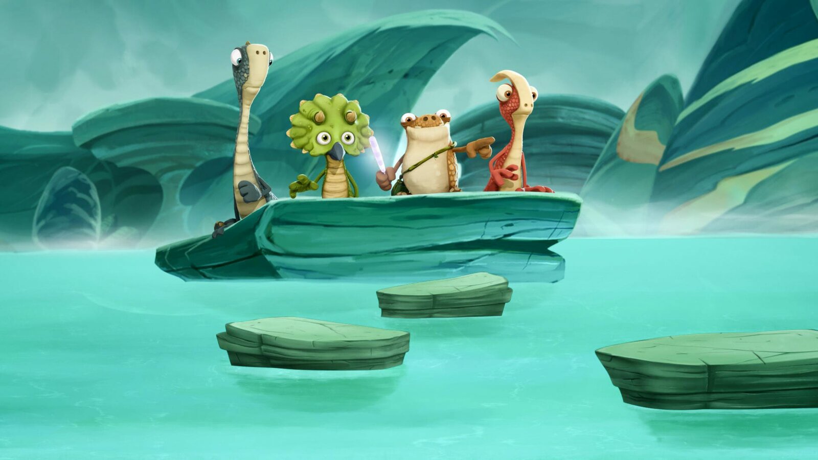Der große böse DinoHat Giganto wirklich den See verwüstet? Die Dino-Freunde wollen das nicht wahrhaben!Bild: © SUPER RTL