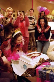 Faule EierSherry (Mädchen Amick, r.) lädt Rory (Alexis Bledel, l.) zu ihrer Babyparty ein. Als Lorelai (Lauren Graham, 2.v.l.) ihre Tochter nach Boston fährt, wird sie schließlich überredet, doch auch zu bleiben - ein Albtraum für Lorelai ...Bild: © 2002 Warner Bros. Lizenzbild frei