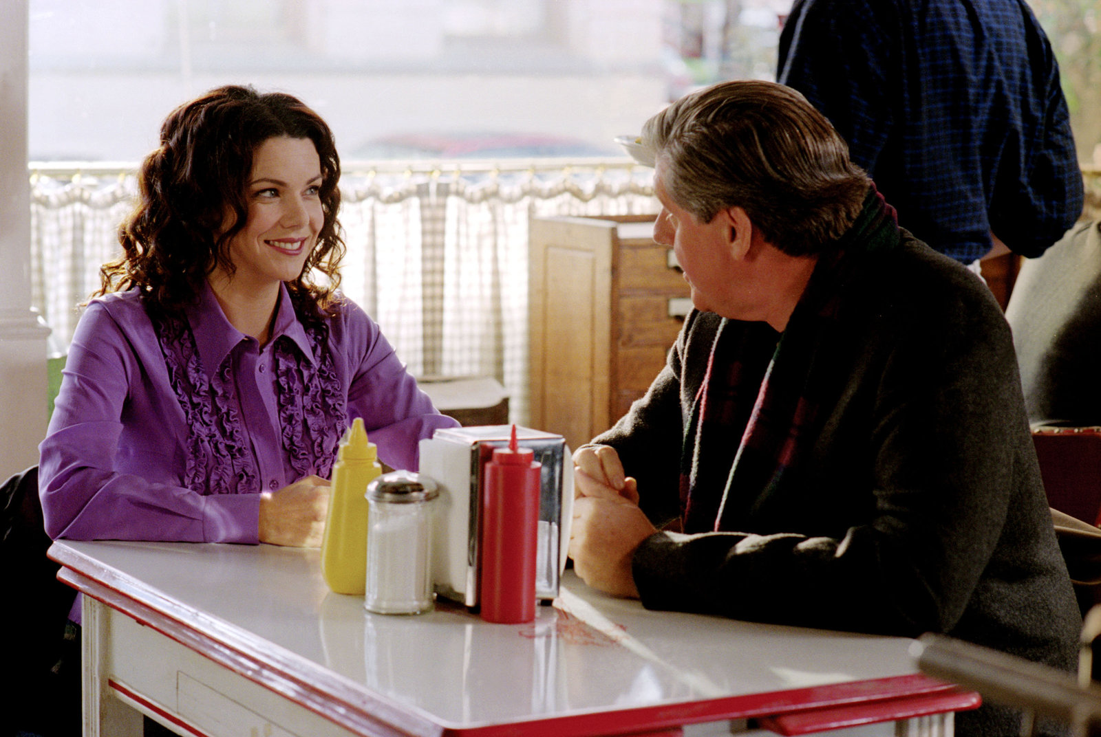 Kuss und SchlussBei Rory (Alexis Bledel, l.), Lorelei (Lauren Graham, M.) und Luke (Scott Patterson, r.) ist immer etwas los ...Bild: © 2000 Warner Bros. Lizenzbild frei