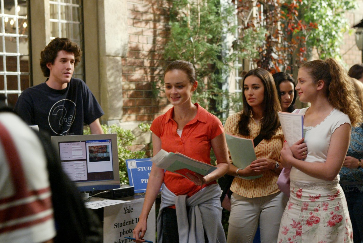 Der erste TagWährend Rory (Alexis Bledel, M.) auf einen guten Start an der Yale hofft, muss sich Luke mit einigen Anzugträgern herumärgern ...Bild: © 2003 Warner Bros. Lizenzbild frei