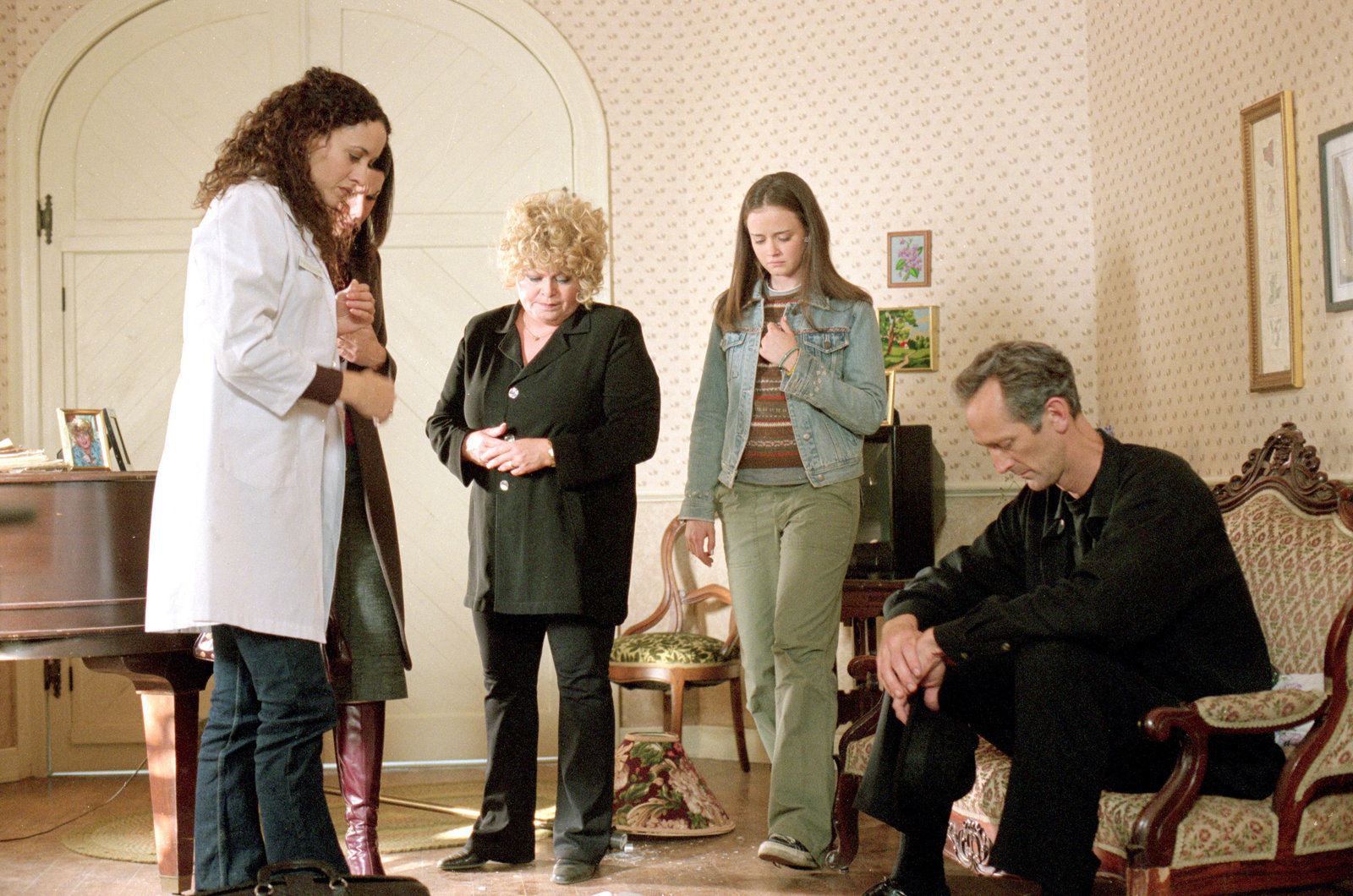 Katzenjammer"Gilmore Girls", "Katzenjammer." Lorelai und Rory haben sich verliebt. Während Rory ihren Schwarm Dean zunächst nur aus der Ferne anhimmelt, funkt es zwischen Lorelai und Max bei einer gemeinsamen Verabredung. Rory ist gar nicht begeistert, dass sich ihre Mutter mit ihrem Lehrer trifft. Inzwischen trauert Babette um ihren kürzlich verstorbenen Kater Cinnamon. Die ganze Nachbarschaft veranstaltet eine Trauerfeier für das dahingeschiedene Haustier.Im Bild (v.li.): DeLaune Michel (Tierärztin), Lauren Graham (Lorelai Gilmore), Sally Struthers (Babette Dell), Alexis Bledel (Lorelai 'Rory' Leigh Gilmore), Ted Rooney (Morey Dell).Bild: © ORF eins