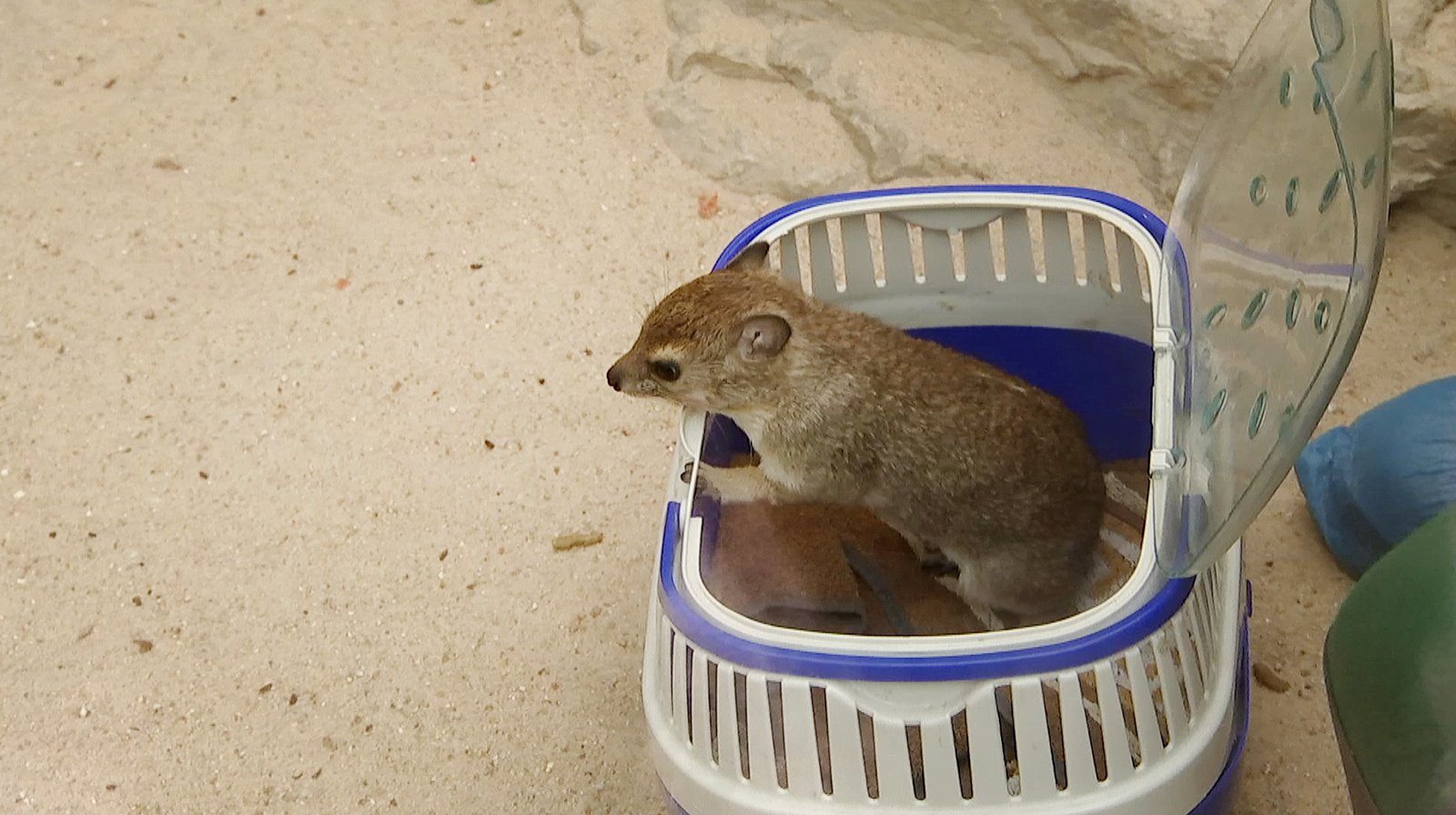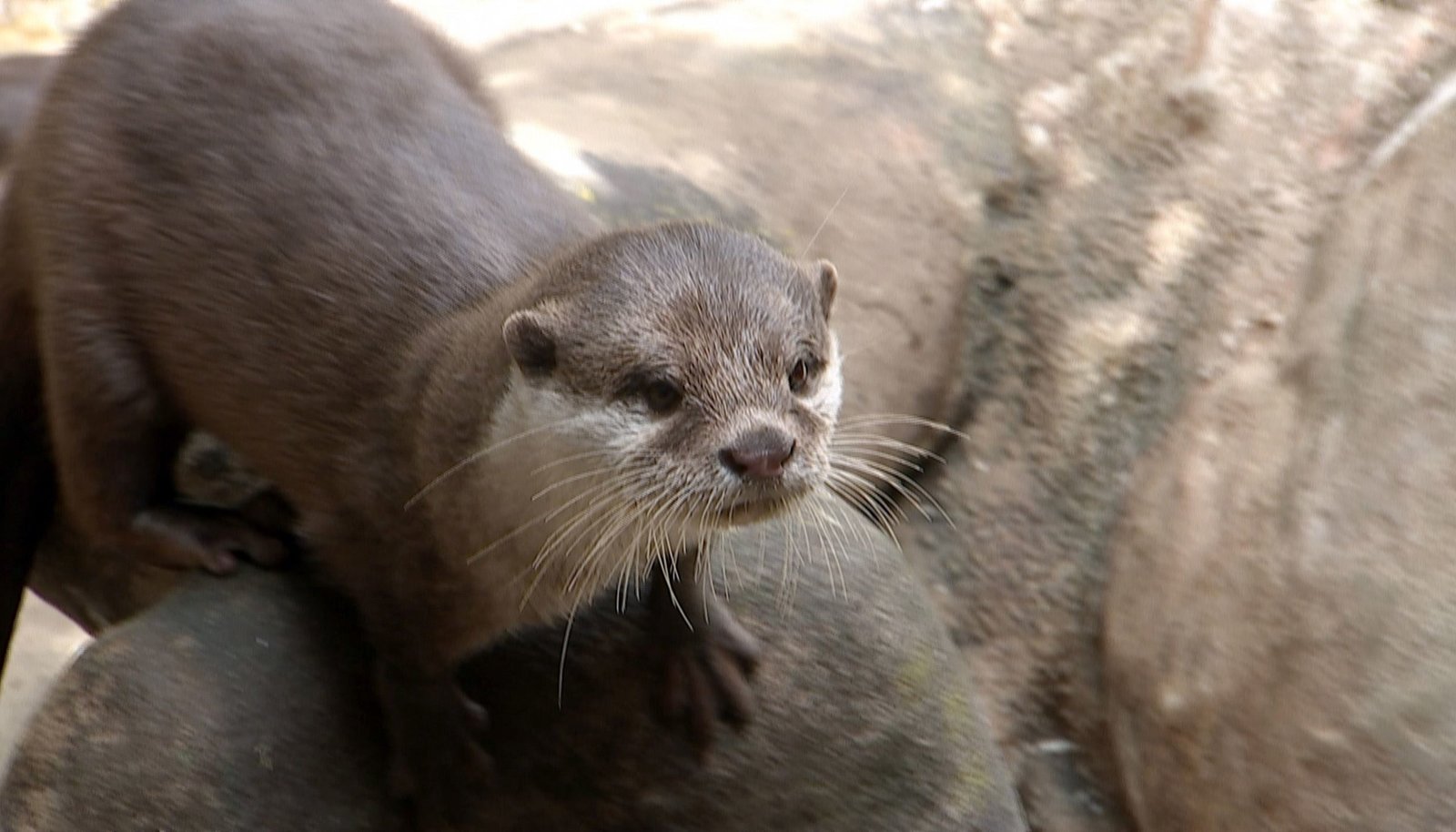 Eine Kiste für Flusspferd MaxZwergotter im Frankfurter Zoo.Bild: © HR