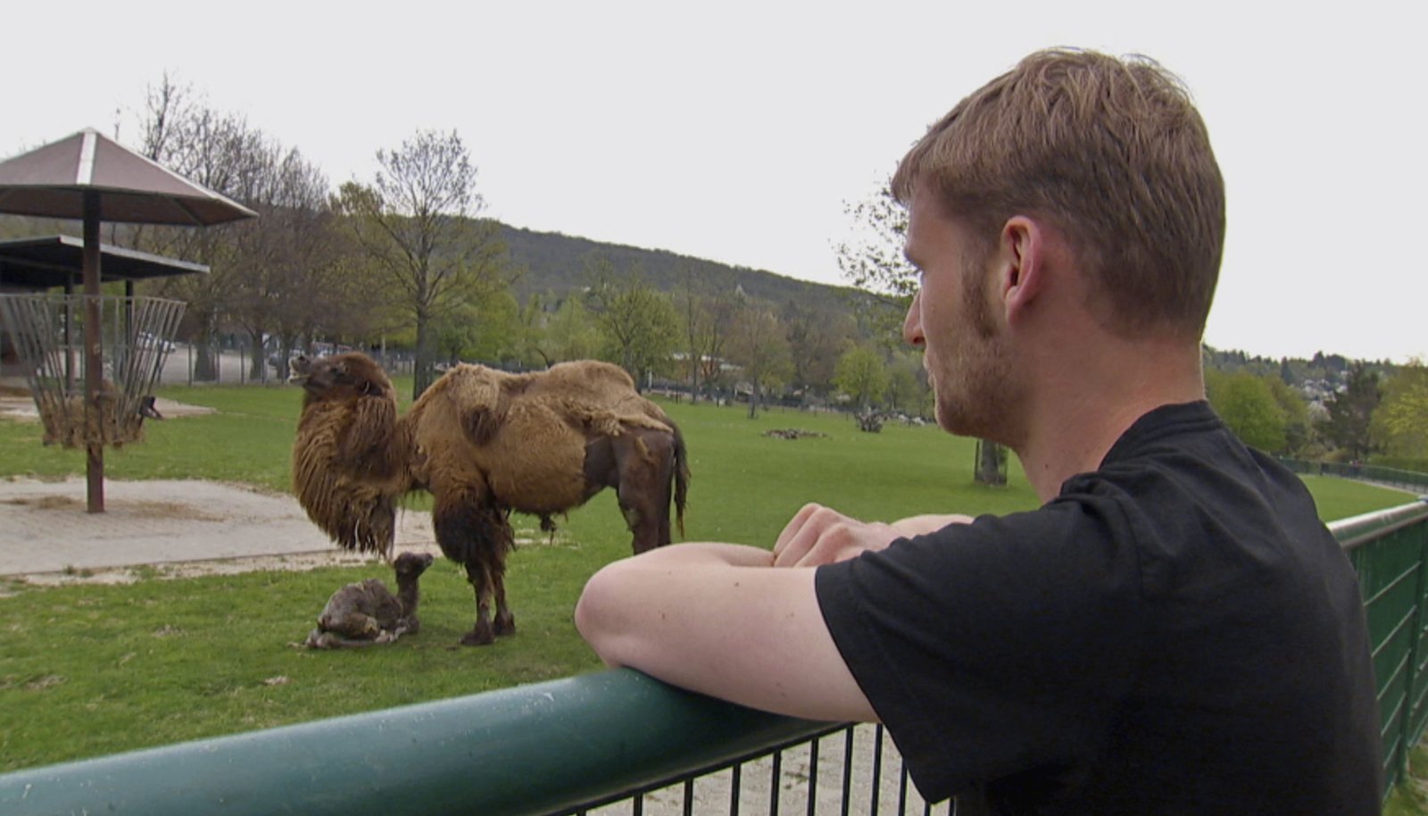 Folge 6Kurator Jörg Beckmann im Opelzoo begutachtet den Trampeltier-Neuzuwachs Goya.Bild: © HR