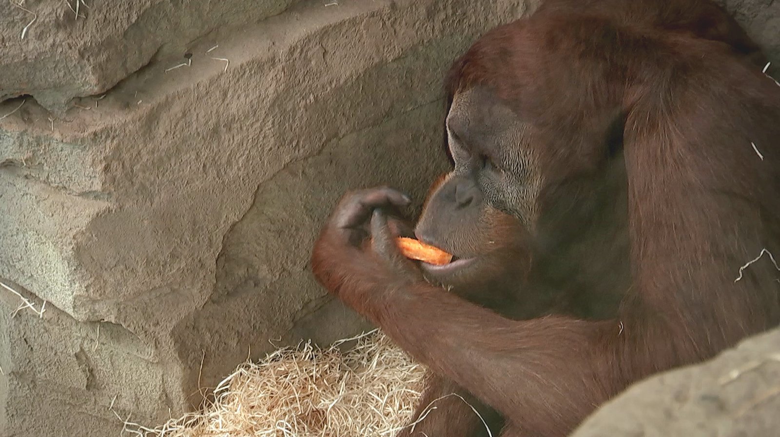 Blind Date bei den Orang-UtansOrang Utan Indah aus England muss sich erst an sein neues Zuhause im Frankfurter Zoo gewöhnen.Bild: © HR