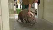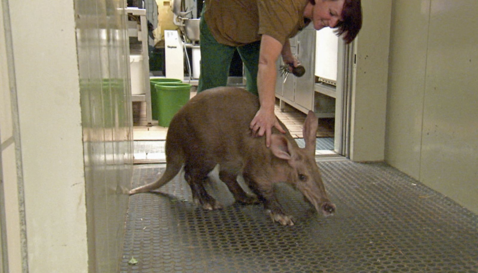 Ist das Tigerbaby ein Junge oder ein Mädchen?hr-fernsehen GIRAFFE, ERDMÄNNCHEN UND CO.-XL (1), Ist das Tigerbaby ein Junge oder ein Mädchen?, Sechsteilige Sendereihe, am Sonntag (17.05.15) um 20:15 Uhr. Erdferkel Elvis aus dem Frankfurter Zoo und Tierpflegerin Astrid Parys fahren gerne zusammen Aufzug.Bild: © HR