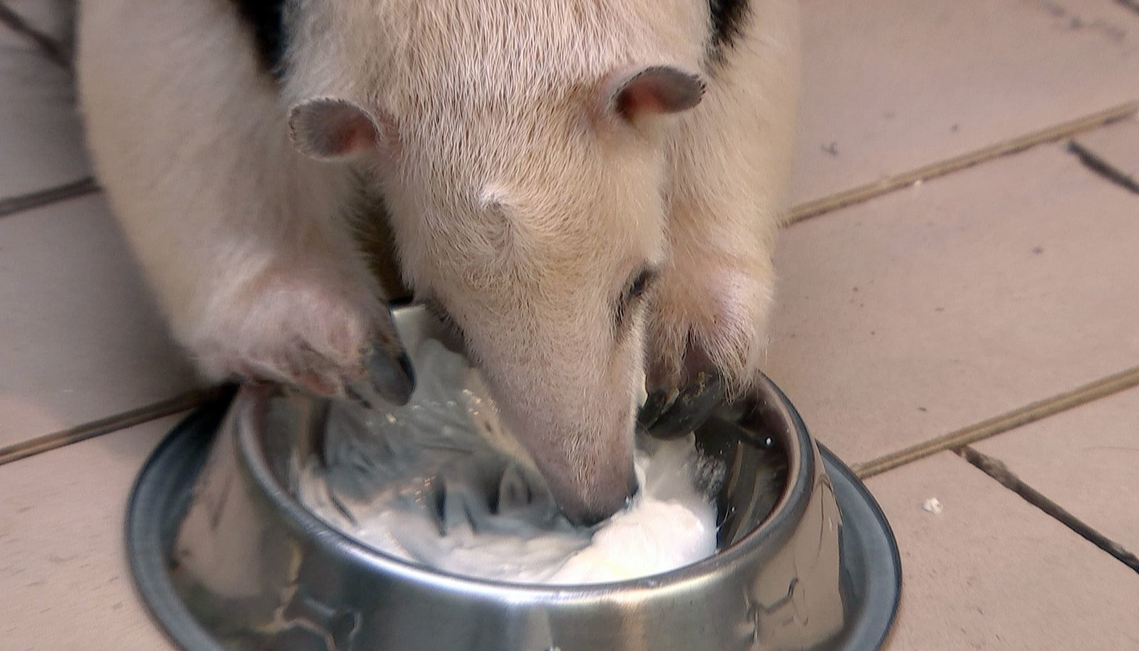 Tamandua Yoda zieht umAmeisenbär beim Frühstück im Zoo Frankfurt.Bild: © HR